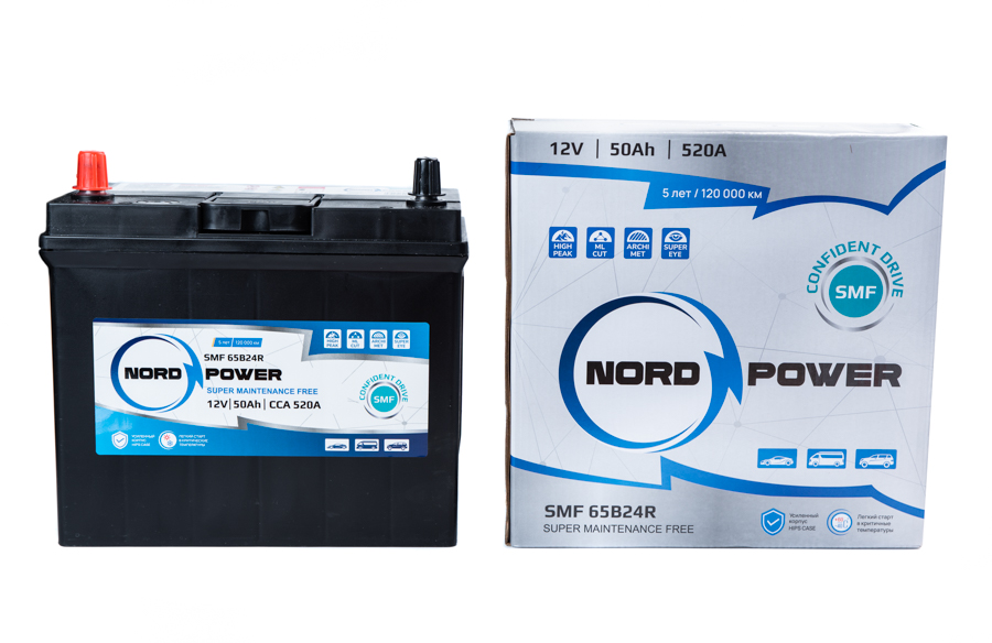 —Аккумулятор NORD POWER SMF 65B24R 50A/h (пусковой ток 520А)