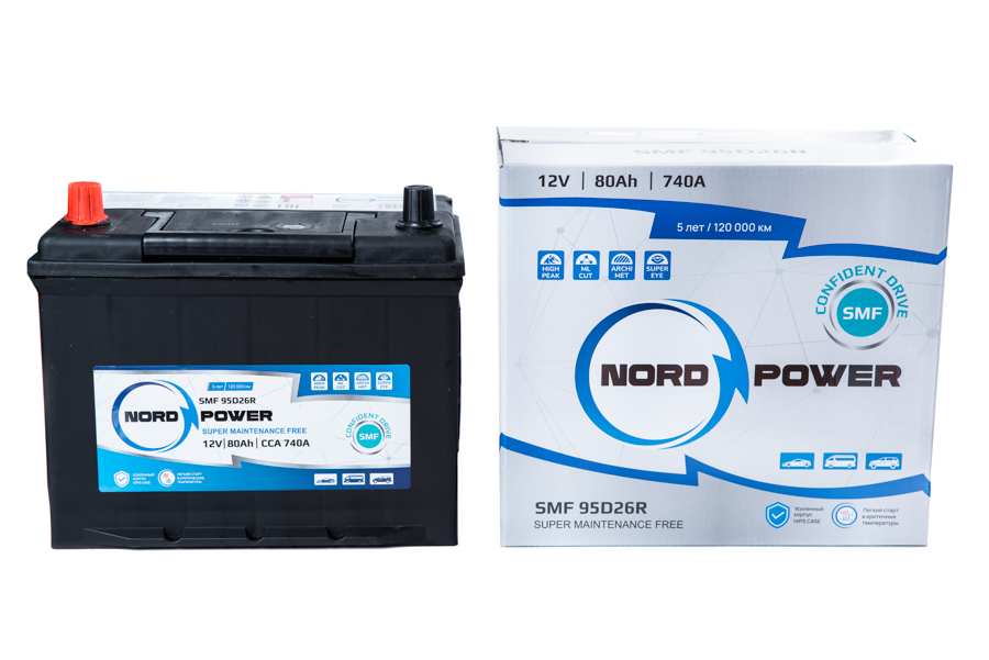 —Аккумулятор NORD POWER SMF 95D26R 80A/h (пусковой ток 740А)