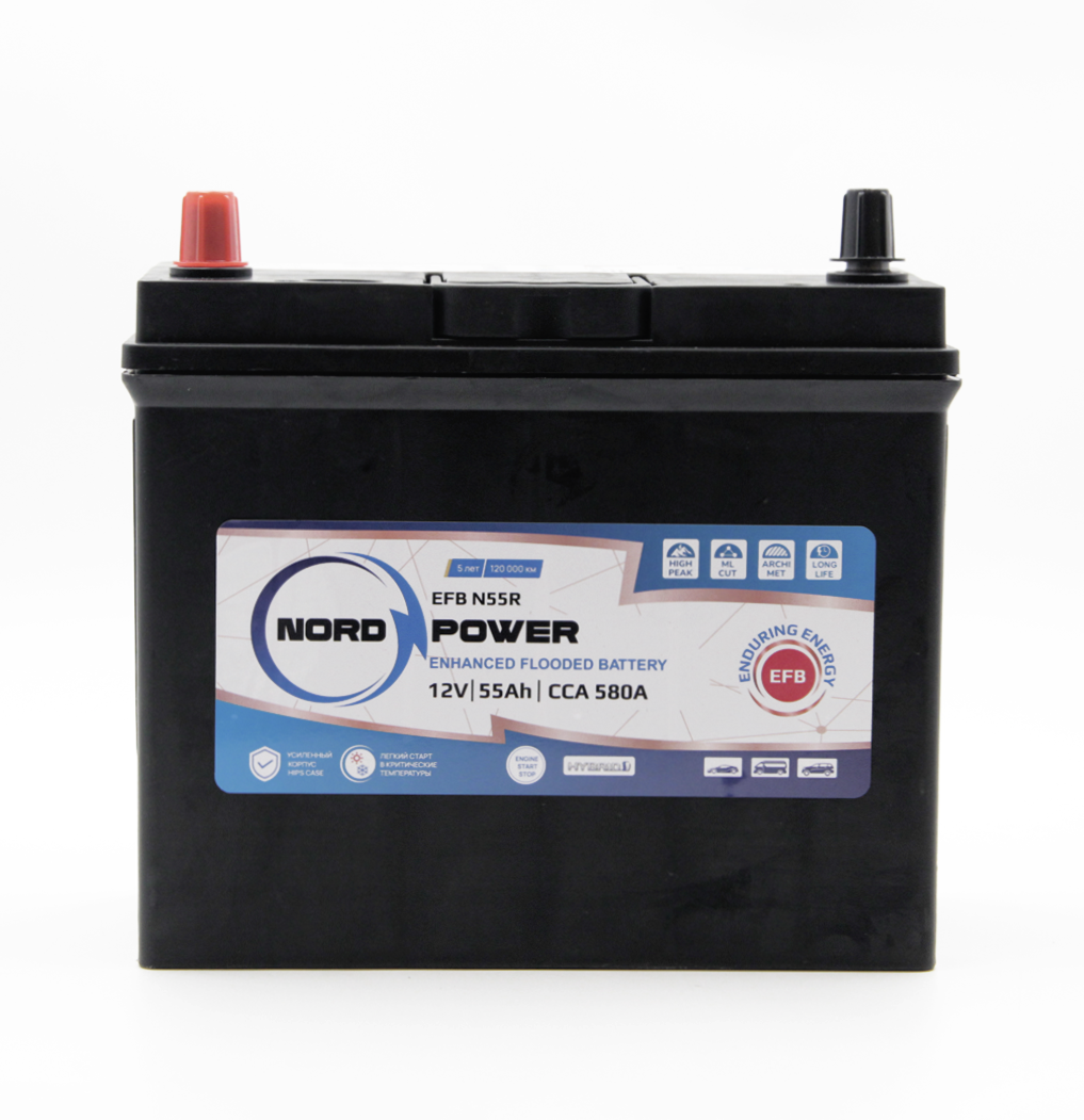 —Аккумулятор NORD POWER EFB N55R (B24R) 55A/h (пуск ток 580А) Start-Stop/Гибрид