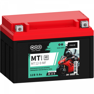 Герметизированные, выполненные по технологии AGM, стартерные мотоциклетные свинцово-кислотные аккумуляторные батареи WBR серии MT12-9 MF обладают высоким качеством и надёжностью. Эти аккумуляторные батареи успешно выдерживают конкуренцию со стартерными батареями этого класса других производителей, соответствуют техническим характеристикам и являются аналогом мотоциклетных аккумуляторных батарей YUASA. Они предназначены для эксплуатации на мотоциклах, скутерах, гидроциклах, квадроциклах, снегоходах и мотовездеходах.