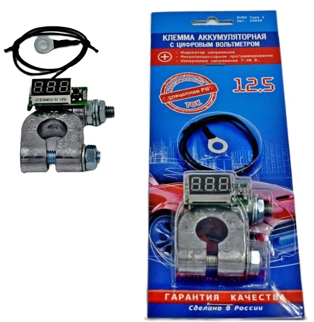 —Клемма АКБ с цифровым вольтметром "Контакт" 25038 евро стандарт 1, 1шт