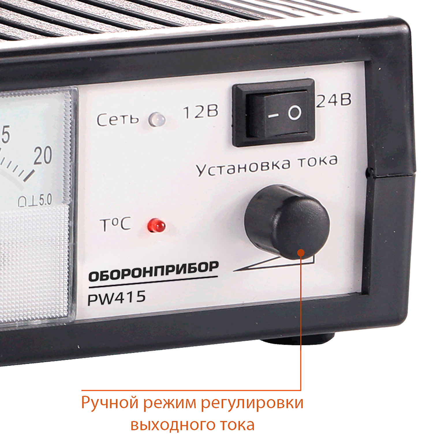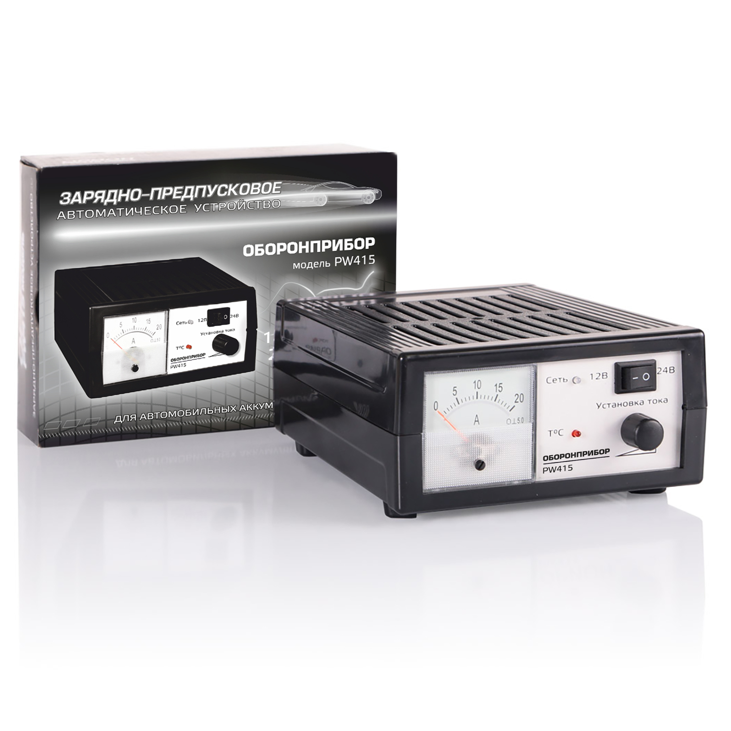 Зарядное устройство импульсное ОБОРОНПРИБОР PW 415 для АКБ Импульсное зарядное устройство ОБОРОНПРИБОР PW 415 применяется для заряда 12В/24В свинцово-кислотных автомобильных аккумуляторов 15-180 А/ч. Может быть использовано в качестве предпускового источника тока, обладает функцией плавной регулировкой тока. В устройство встроена защита от переполюсовки и короткого замыкания, а также термозащита с индикацией.  Модель оснащена зажимами для подключения к аккумуляторной батарее и стрелочным индикатором тока. Работает в автоматическом режиме, по окончанию зарядки переходит в «режим ожидания». ОБОРОНПРИБОР PW 415 – это надежное и простое в эксплуатации импульсное зарядное устройство. Автоматическое зарядное устройство  Функция плавной регулировки тока  Применяется в качестве предпускового устройства Защита от переполюсовки Защита от перегрева с микровентилятором Защита от короткого замыкания Автоматический переход в «режим ожидания» Стрелочный индикатор тока Зарядное устройство Инструкция по эксплуатации Гарантийный талон Импульсное зарядное устройство Заряд аккумуляторов 12В/24В Выходной ток – 0,4 – 20 / 0,4-15 А  Выходное напряжение в режиме стабилизации напряжения–14,9-15,1 / 29,8-30,2 В  Выходное напряжение в режиме стабилизации тока –0-15 / 0-30 В  Емкость заряжаемого аккумулятора: 15-180А/ч. Диапазон питающего напряжения 180-240В, 50Гц. Производитель: ООО «НПП «Оборонпромприбор» Страна производства: Россия Масса: 0,970 кг Габариты (мм): 210 x 155 x 85 Объем: 0,0033 куб.м Упаковка: картонная коробка