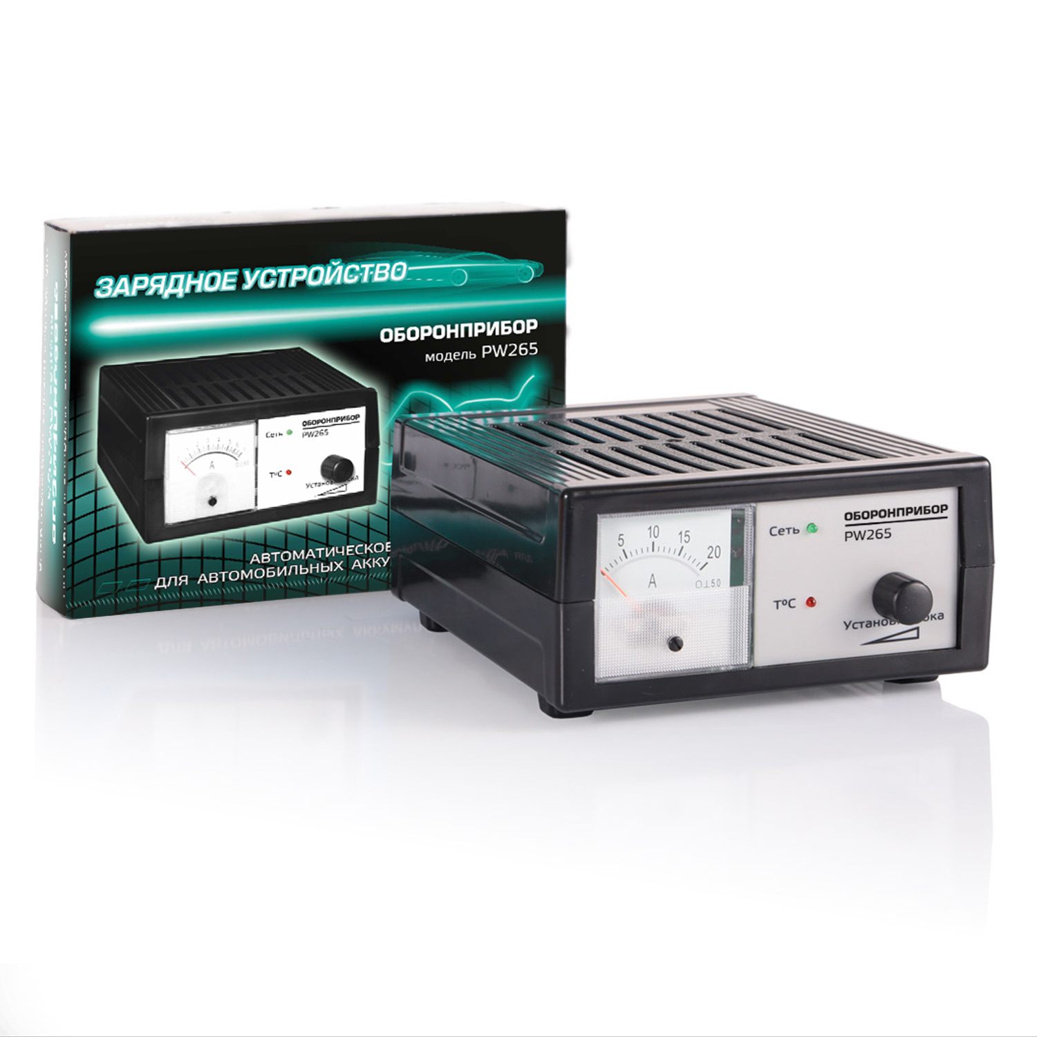 Зарядное устройство импульсное ОБОРОНПРИБОР PW 260 для АКБ Импульсное зарядное устройство ОБОРОНПРИБОР PW 260 применяется для заряда 12В свинцово-кислотных автомобильных аккумуляторов 5-60 А/ч. Обладает функцией плавной регулировкой тока. В устройство встроена защита от переполюсовки и короткого замыкания, а также термозащита с индикацией.  Модель оснащена зажимами для подключения к аккумуляторной батарее. Работает в автоматическом режиме, по окончанию зарядки переходит в «режим ожидания». ОБОРОНПРИБОР PW 260 – это надежное и простое в эксплуатации импульсное зарядное устройство. Автоматическое зарядное устройство  Функция плавной регулировки тока  Защита от переполюсовки Защита от перегрева Защита от короткого замыкания Автоматический переход в «режим ожидания» Светодиодный индикатор тока Зарядное устройство Инструкция по эксплуатации Гарантийный талон Импульсное зарядное устройство Заряд аккумуляторов 12В Выходной ток – 0,4 - 6 А  Выходное напряжение в режиме стабилизации напряжения–14,9-15,1 В  Выходное напряжение в режиме стабилизации тока –0-15 В Емкость заряжаемого аккумулятора: 5-60А/ч. Диапазон питающего напряжения 180-240В, 50Гц. Производитель: ООО «НПП «Оборонпромприбор» Страна производства: Россия Масса: 0,850 кг Габариты (мм): 210 x 155 x 85 Объем: 0,0033 куб.м Упаковка: картонная коробка
