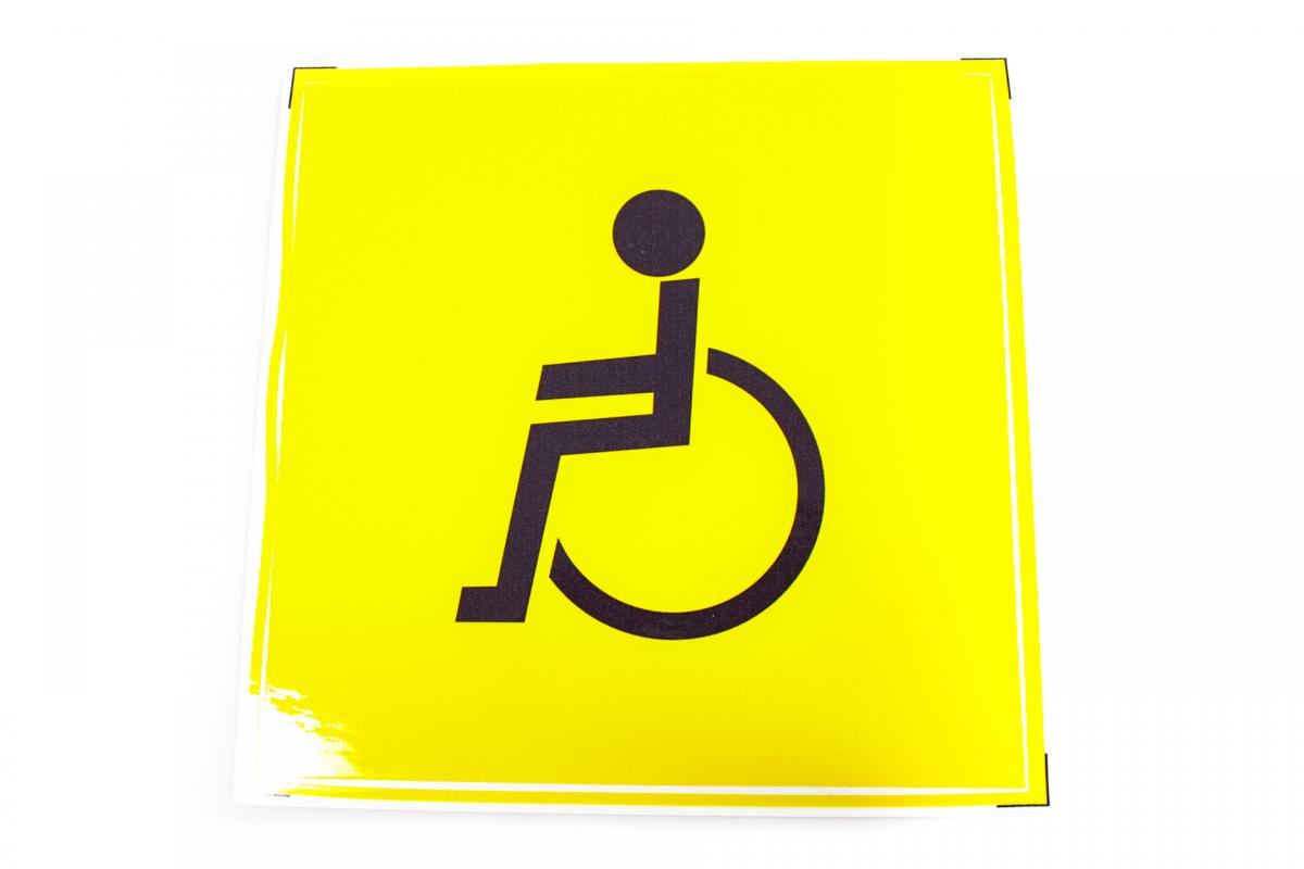 Наклейка на стекло автомобиля самоклеющаяся наружная. Знак "Инвалид". Размеры: 150x150мм