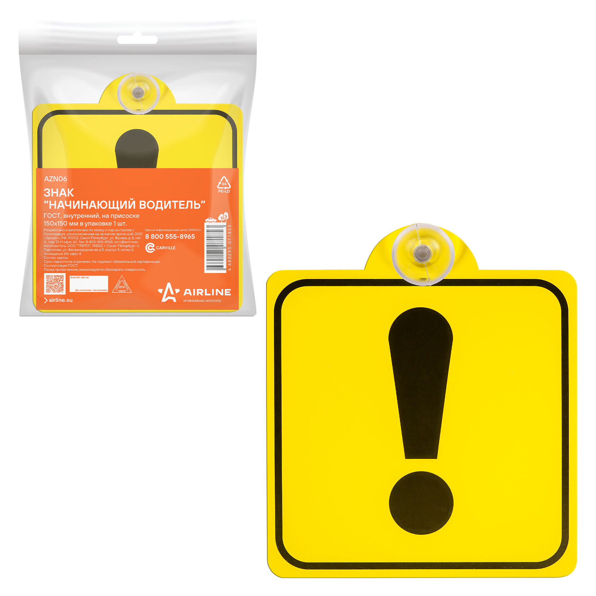 —Наклейка (знак) "Начинающий водитель" AIRLINE AZN06 внутренняя на присоске