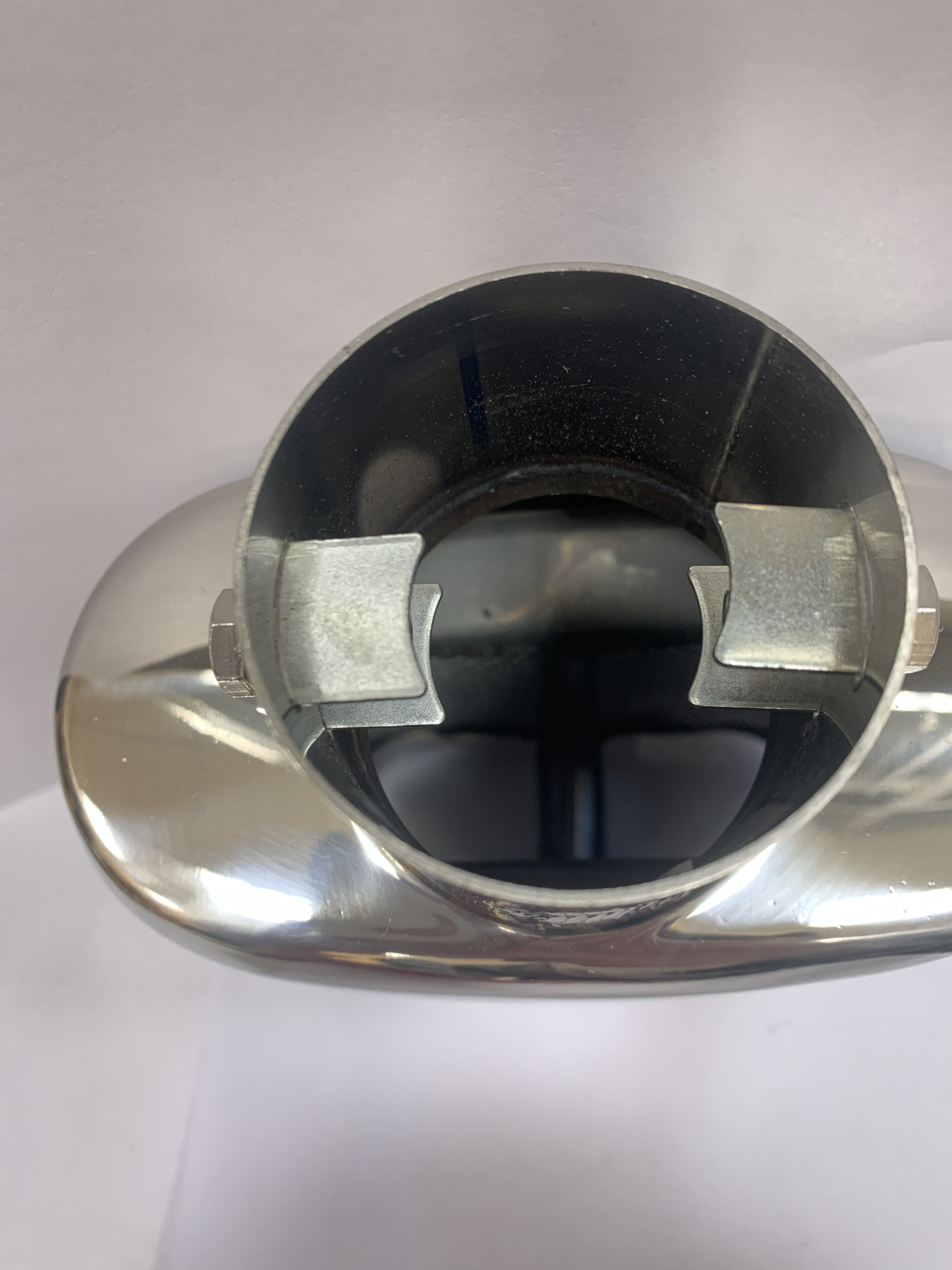 Насадка на глушитель сделана из нержавеющей стали с зеркальной полировкой. Длина: 190 мм.  Внутренний диаметр: от 30 до 55 мм. Наружный диаметр: 120 мм.