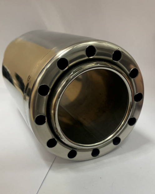 Насадка на глушитель из нержавеющей стали.  Длина: 210 мм.  Внутренний диаметр: 65 мм. Внешний диаметр: 90 мм.