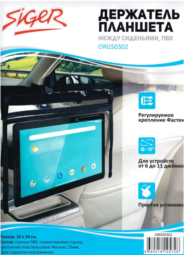 Держатель планшета между сиденьями автомобиля SIGER из ПВХ прозрачный orgs0302. Это незаменимый помощник в дороге для семей с детьми. Он легко крепится между сидений, и ребенку больше не придется держать планшет в руках. Экран размещается на уровне глаз, что обеспечивает удобство просмотра во время поездки.  Прочная прозрачная пленка не искажает изображение и надежно защищает экран от пыли, грязи и влаги. Держатель легко очищается и не доставляет хлопот в уходе. Не создает помех водителю и пассажирам.