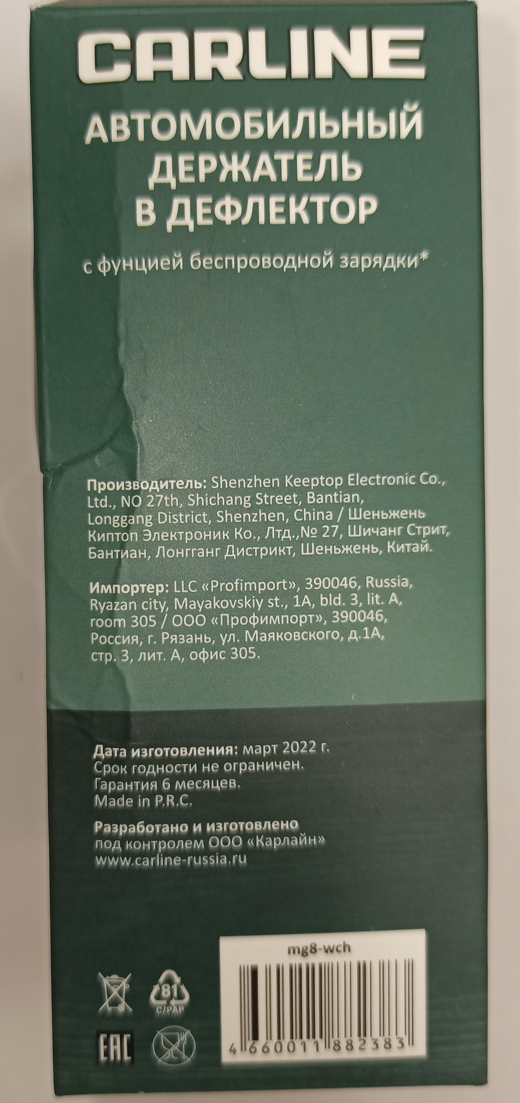 —Держатель телефона MG8-WCH Carline с функцией беспроводной зарядки для смартфона в дефлектор автомобиля, гравитационный