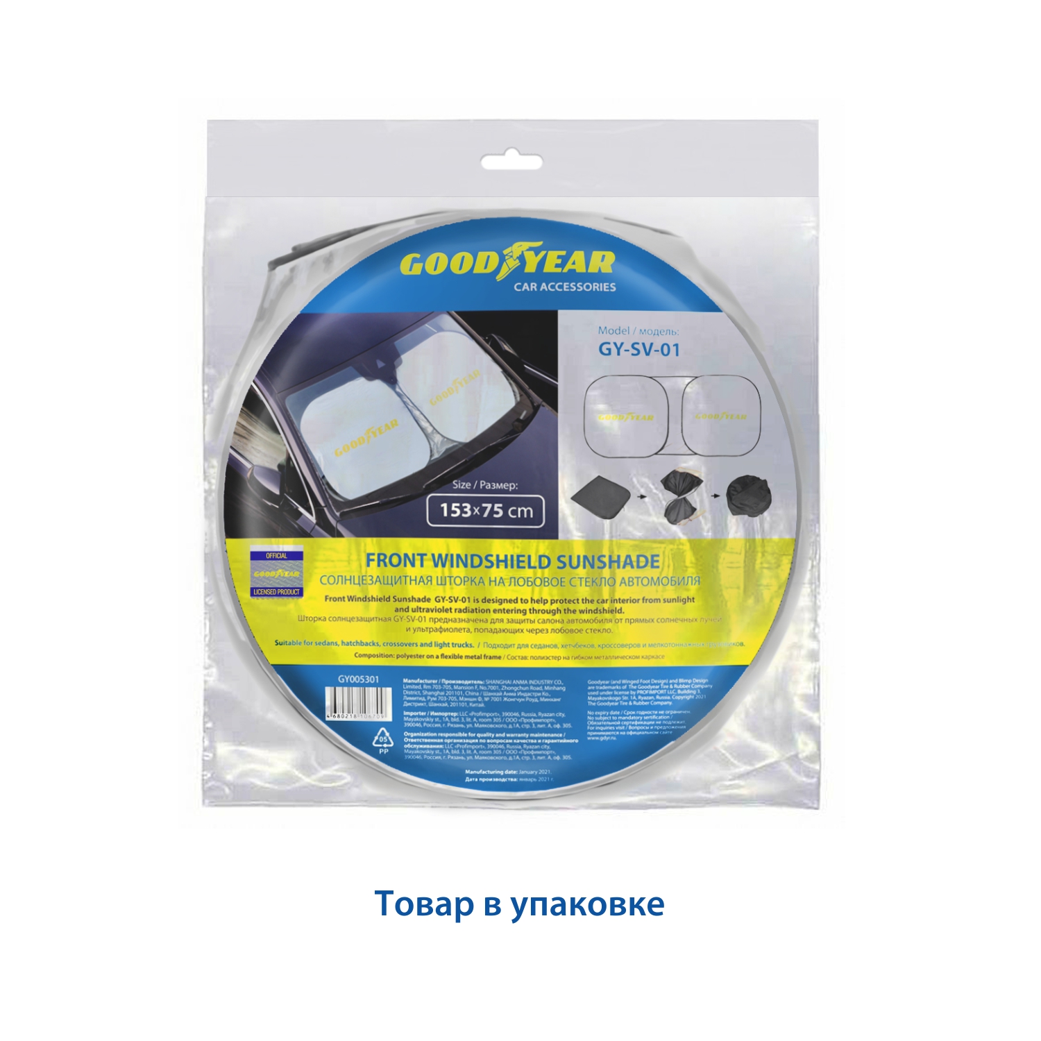 —Шторка на лобовое стекло солнцезащитная GY-SV-01 (153*75см), универсальная GY005301 Goodyear