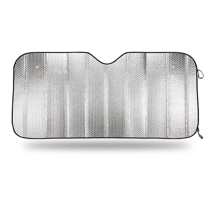 Солнцезащитный экран на лобовое стекло, светоотражающий, двухсторонний.  Экран имеет стандартный вырез для зеркала заднего вида и подходит на большинство современных автомобилей.  В качестве материала используется Single Bubble - комбинированный 3-слойный материал: алюминиевая фольга, слой воздушно-пузырчатой пленки и алюминиевая фольга.  На стекло экран крепится с помощью идущих в комплекте присосок. Экран незаменим при продолжительных стоянках на открытых парковках, во время пикника или на пляже.  Он эффективно отражает солнечные лучи, защищая салон от перегрева и предотвращая выгорание материалов интерьера во время стоянок на открытом пространстве.
