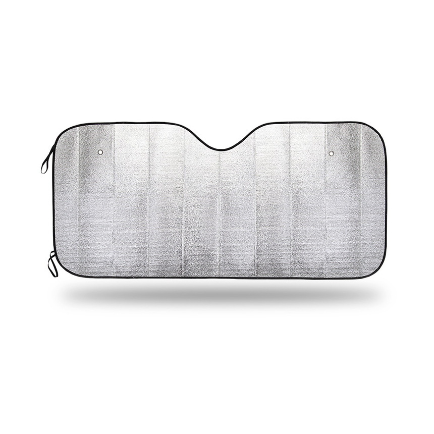 Солнцезащитный экран на лобовое стекло, светоотражающий, двухсторонний.  Экран имеет стандартный вырез для зеркала заднего вида и подходит на большинство современных автомобилей.  В качестве материала используется Foam - комбинированный 2-слойный материал: алюминиевая фольга и специальный вспененный материал (1,5 мм).  На стекло экран крепится с помощью идущих в комплекте присосок. Экран незаменим при продолжительных стоянках на открытых парковках, во время пикника или на пляже.  Он эффективно отражает солнечные лучи, защищая салон от перегрева и предотвращая выгорание материалов интерьера во время стоянок на открытом пространстве.