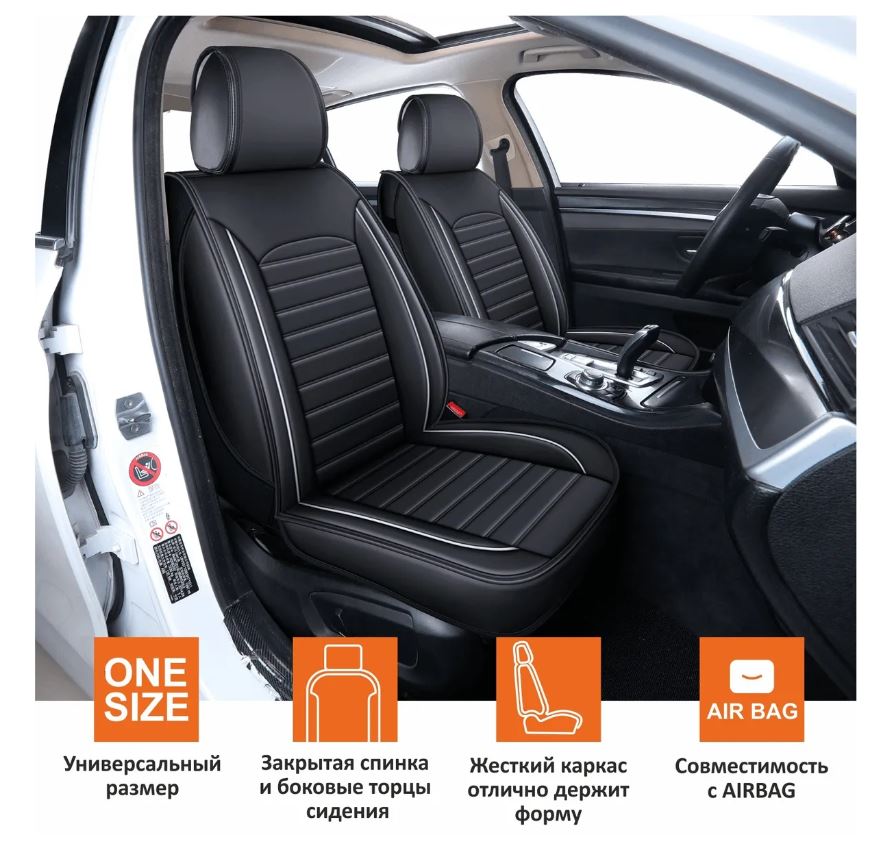 Накидки на сиденье каркасные универсальные SENATOR CREED, экокожа, комплект 2шт., поролон 10мм /черный. ХАРАКТЕРИСТИКИ товара: • Универсальный размер • Долговечность и простой уход • Полная защита сидений от повреждений • Карманы на спинках • Повышенная мягкость (триплированны поролоном 10 мм) • Совместимость с Airbag • Жесткий каркас • Простая установка • Предустановленные технологические отверстия и крепежи • 2 накидки на передние сиденья • Материал: экокожа + полиэстр • Цвет: черный • Размер накидки: универсальный • Страна производитель: Китай Вид техники: Легковые автомобили, Внедорожники