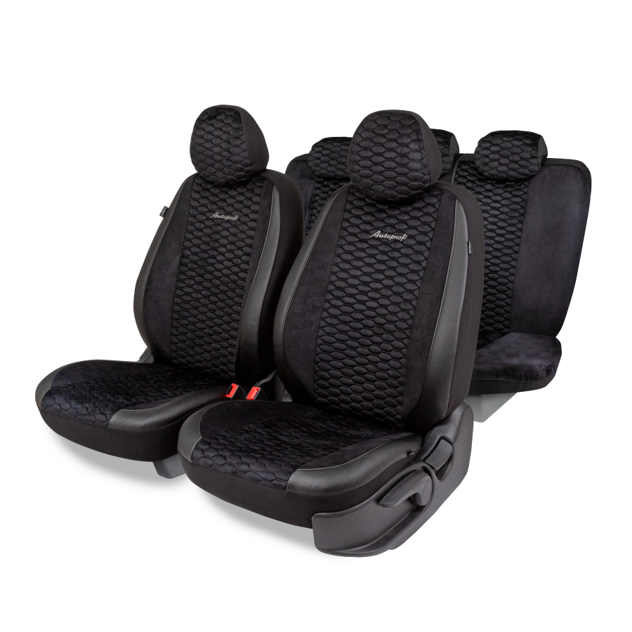 Авточехлы "AUTOPROFI Premium Verossa" VRS-1107 BK/BK паттерн велюр, экокожа 11пр, чёрный
