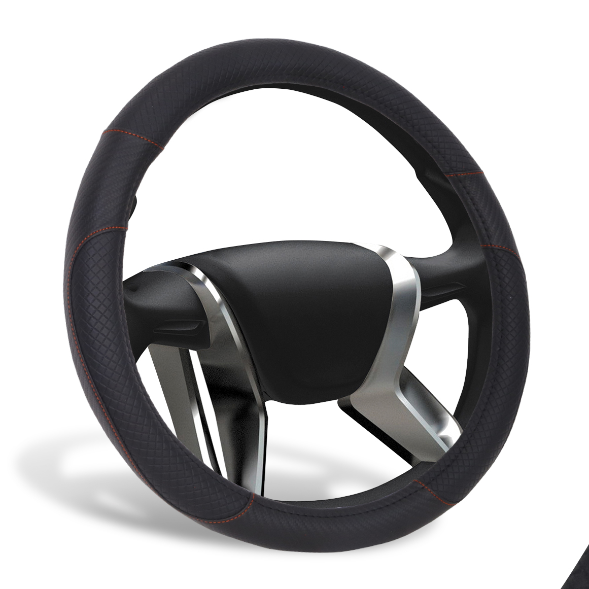 —Чехол на руль "AZARD PLAID" экокожа OPLA0160, вставки карбон, прострочка красная, М /черный/