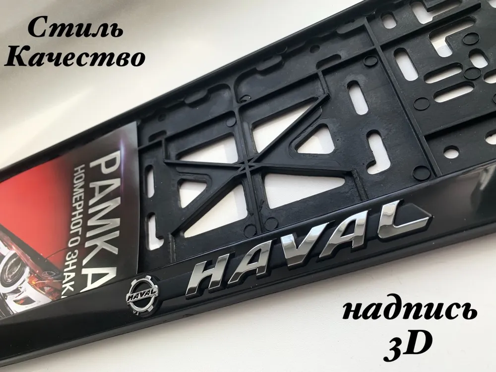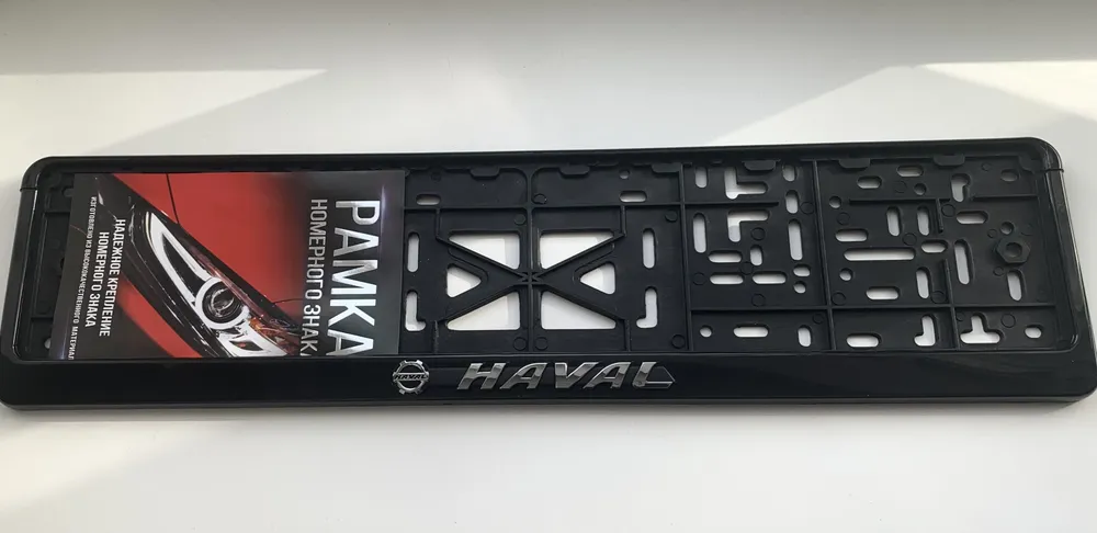 Рамка номерного знака изготовлена из полипропилена.  Этот держатель номера для машины черного цвета. Рамка для номера автомобиля Haval имеет стандартную прямоугольную форму.  А так же рамка для номера авто имеет российско-европейский размер. Рамка номера с надписью устанавливается на бампер автомобиля и крепится с помощью простого в использовании механизма.  Рамка для автомобильного номера устойчива к морозам.  Наши номерные рамки черные с надписями прослужат вам долго. Преимущества: 1. Рамка для автомобильного номера изготовлена из морозостойкого материала; 2. Рамка номера с надписью имеет российско-европейский размер; 3. Рамка на гос номер соответствуют требованиям ГИБДД; 4. Рамка для номера автомобиля Хавал плотно прилегает к бамперу; 5. Крепление номера авто не выцветает и не ржавеет; 6. Рамка для номера авто не царапает автомобиль; 7. Держатель номера для машины не гремит. Размер рамки номерного знака: 540Х140Х20 мм. Номерные рамки черные с надписями порадуют вас своим качеством и внешним видом.  Авторамка для номера с надписью крепкая и надежная. Рамка на гос номер станет отличным подарком на любой праздник.  Крепление номера авто привлечет к себе внимание!  Наша авторамка для номера с надписью - это лучший выбор!