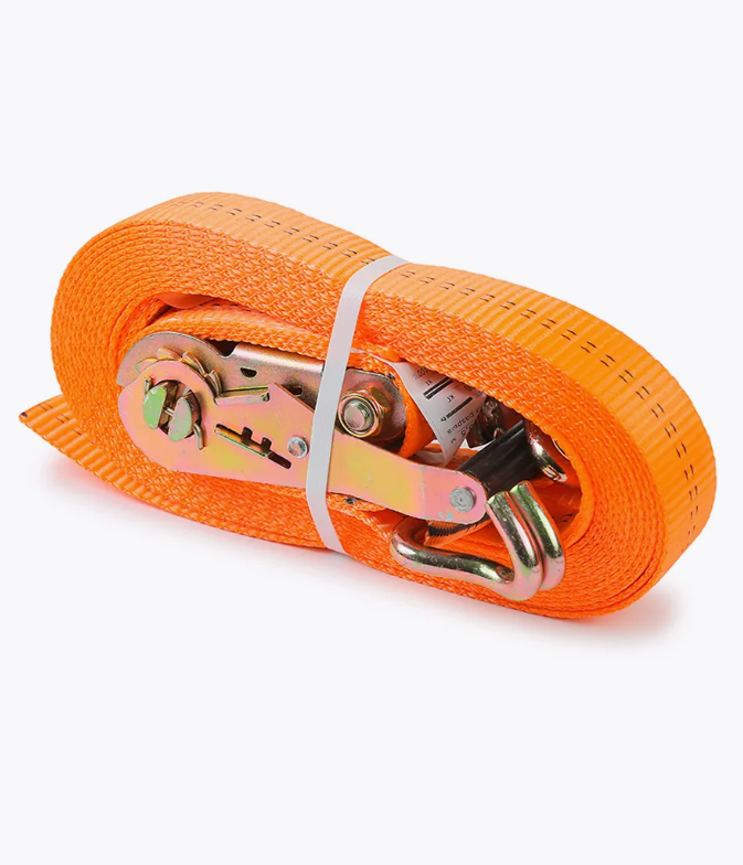 Стяжной ремень для крепления грузов в комплекте с храповым натяжителем и 2 металлическими крюками. Применяется для надежного закрепления различных предметов в кузове, на прицепах и полуприцепах грузовой машины, а так же на багажнике и прицепе легкового автомобиля или на складах.