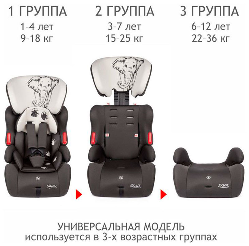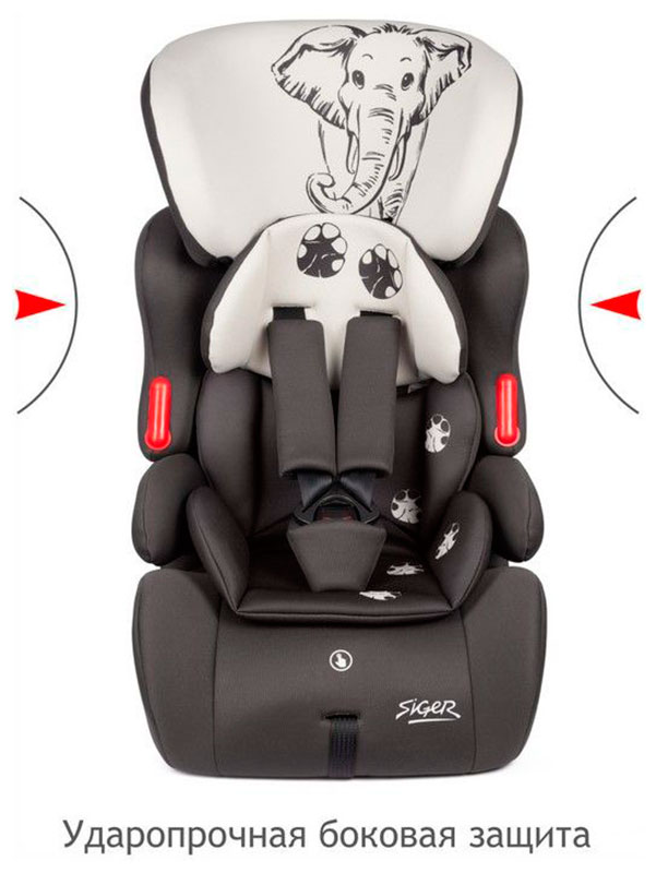 Детское автокресло "SIGER КОСМО" KRES3597 серо-бежевый,слон,люкс 1-12 лет, 9-36 кг, группа 1/2/3