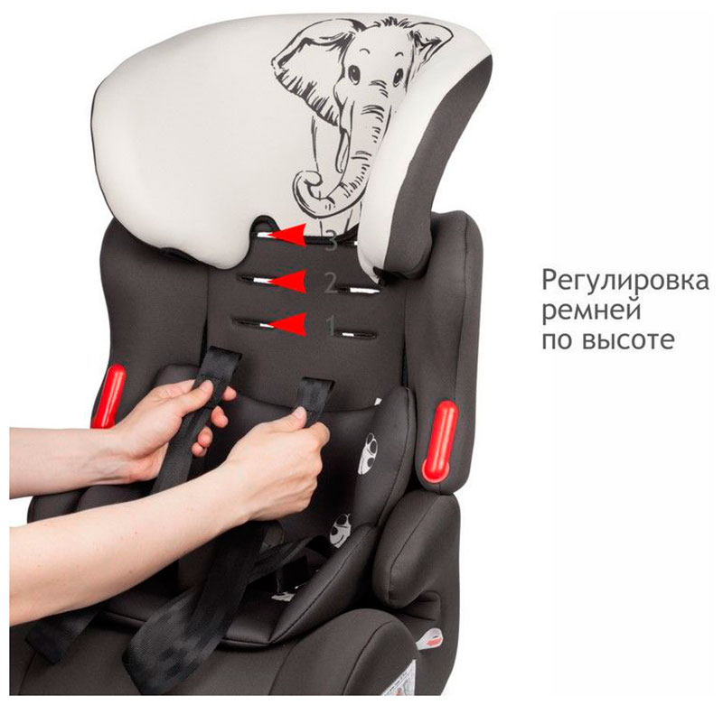 —Удерживающее устройство для детей "SIGER КОСМО" KRES3597 серо-бежевый,слон,люкс 1-12 лет, 9-36 кг, группа 1/2/3