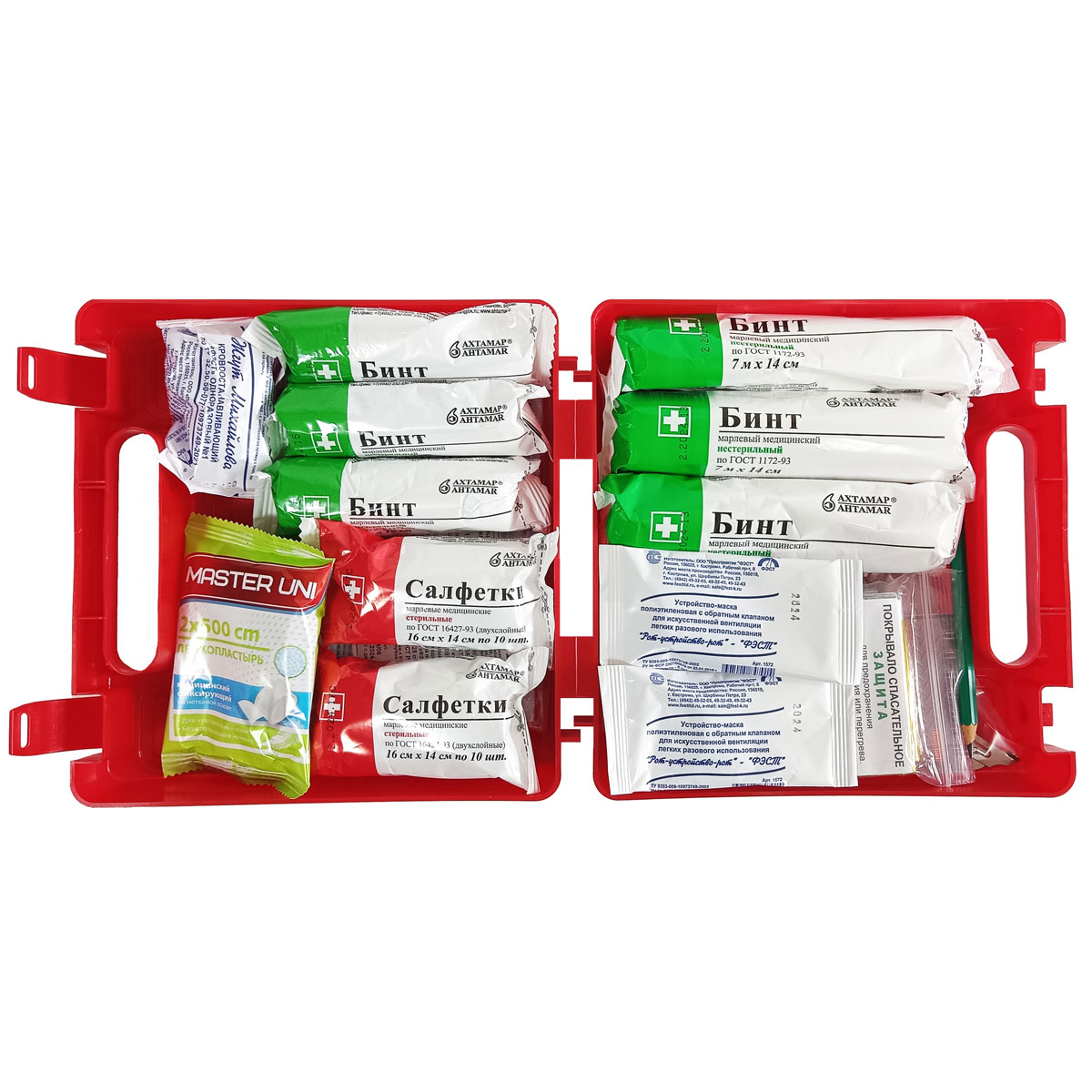 Автомобильная аптечка ФЭСТ – личная аптека в бардачке. Иметь аптечку для оказания само- и взаимопомощи в своей машине обязан каждый водитель. Об этом говорится в Правилах дорожного движения, действующих на территории Российской Федерации. Однако наборы медицинских изделий от различных производителей могут весьма существенно отличаться. Так, цена на автомобильную аптечку первой помощи зависит не только от входящих в ее состав вложений, но и от наценки производителя. Предприятие «ФЭСТ» предлагает приобрести аналогичный набор для автомобиля по доступной цене без потери в качестве и в комплектации. Содержание автомобильной аптечки «ФЭСТ»: Маска медицинская нестерильная одноразовая 2 шт. Перчатки медицинские нестерильные, размером не менее М 2 пары Устройство для проведения искусственного дыхания «Рот-Устройство-Рот» 2 шт. Жгут кровоостанавливающий для остановки артериального кровотечения 1 шт. Бинт марлевый медицинский размером не менее 5 м х 10 см или бинт фиксирующий эластичный нестерильный размером не менее 2 м х 10 см 3 шт. Бинт марлевый медицинский размером не менее 7 м х 14 см или бинт фиксирующий эластичный нестерильный размером не менее 2 м х 14 см 3 шт. Салфетки медицинские стерильные размером не менее 16 х 13 см № 10 2 уп. Лейкопластырь фиксирующий рулонный размером не менее 2 см х 500 см 1 шт. Покрывало спасательное изотермическое размером не менее 160 х 210 см 1 шт. Ножницы для разрезания перевязочного материала и ткани 1 шт. Инструкция по оказанию первой помощи с использованием аптечки для оказания первой помощи с применением медицинских изделий пострадавшим в дорожно-транспортных происшествиях (автомобильной) 1 шт. Блокнот формата не менее А7 1 шт. Маркер черный (синий) или карандаш 1 шт. Футляр или сумка 1 шт.