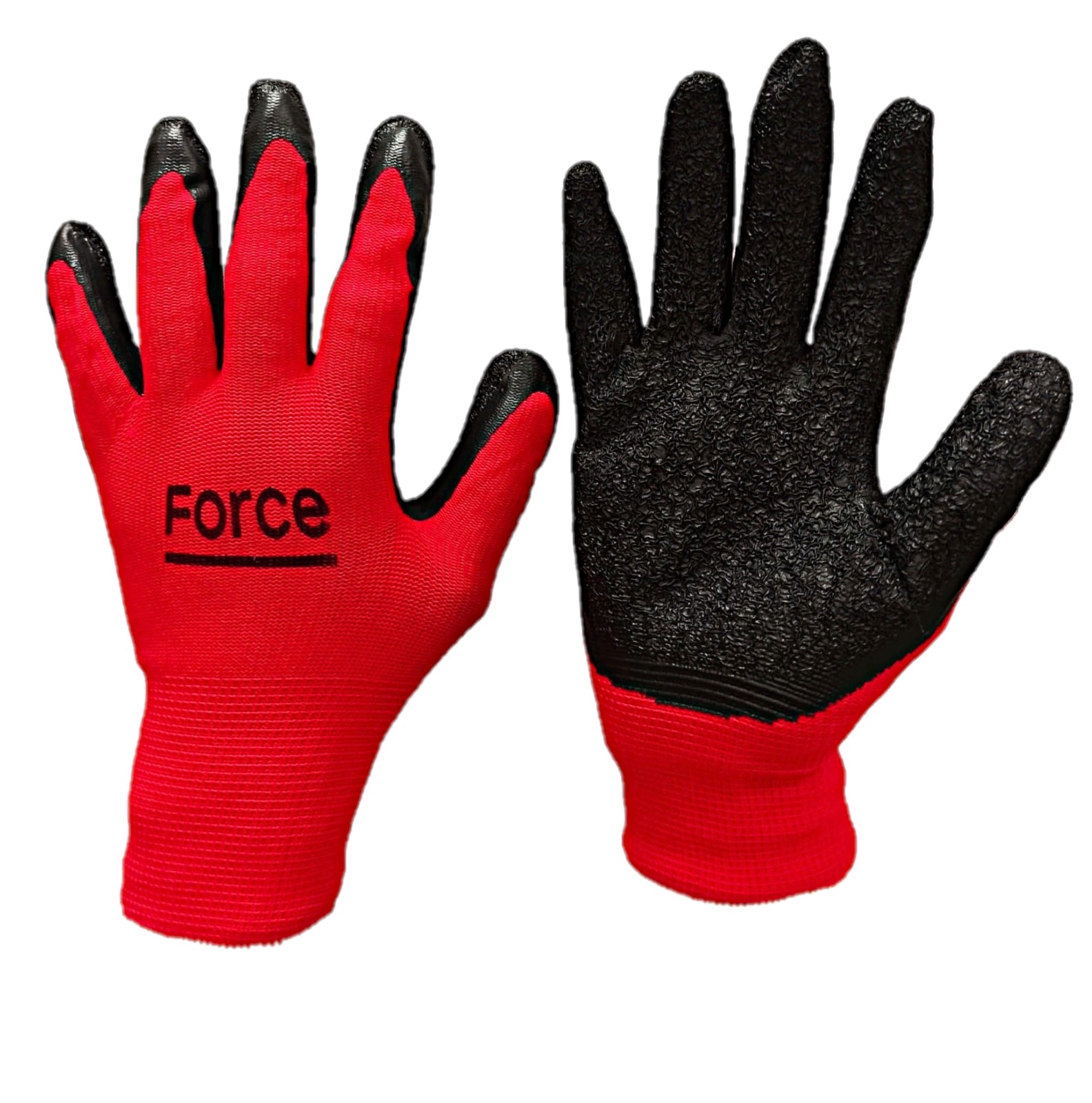 —Перчатки нейлоновые красные с черным нитриловым покрытием маслостойкие Force