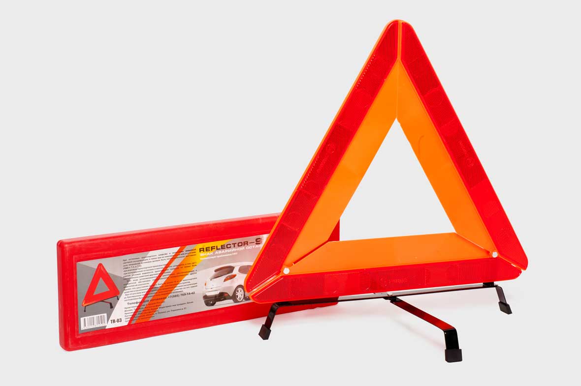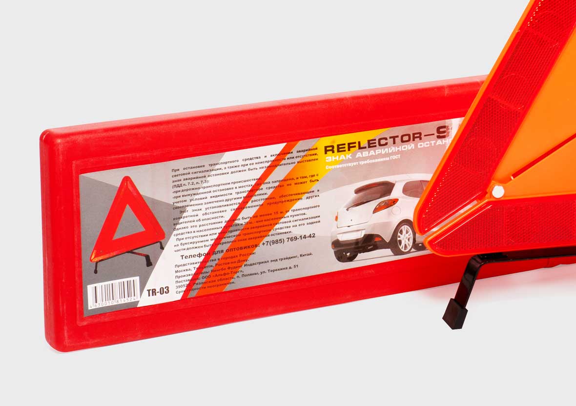Новый знак аварийной остановки Reflector-911 ТР 03 Классическая модель знака аварийной остановки. Каркас знака и флуоресцирующая часть выполнены из прочного пластика, на поверхность которого установлены светоотражатели. Металлические ножки знака выполнены в виде креста с резиновыми наконечниками, что обеспечивает дополнительную устойчивость. Знак аварийной остановки имеет складную конструкцию и не занимает много места в багажнике автомобиля. Модель упакована в фирменный кейс с правилами ПДД об аварийных знаках. Особенности Складная конструкция Металлические ножки знака с резиновыми наконечниками Упаковка - пластиковый кейс Каркас - пластик Поверхность - пластиковые отражатели Флуоресцирующая часть - пластик