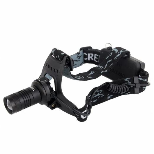 Описание: Налобный светодиодный фонарь с зумом. 20часов работы без подзарядки. Сила освещения - 2000 Lm. Диапазон света - 100 метров.