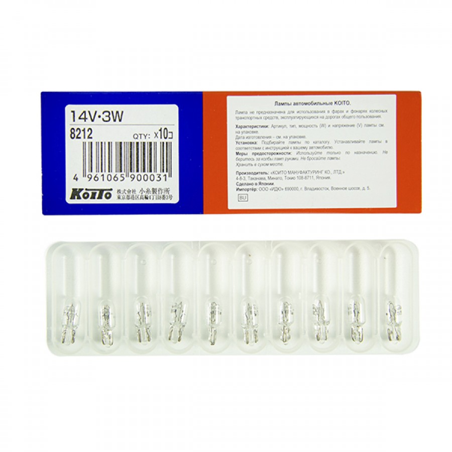 Лампа доп. освещения Koito 8212 14V 3W T7 (кратность 10 шт.)