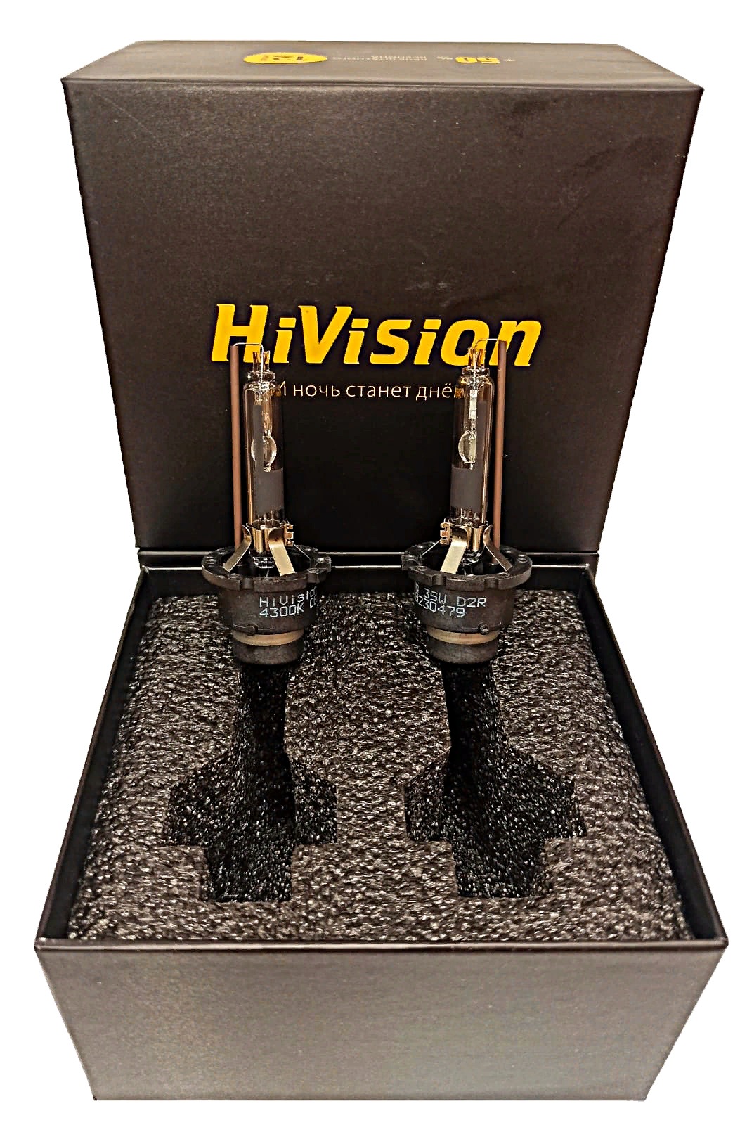 Бренд: HiVision Производитель: Китай Напряжение сети, V: 12 Тип цоколя: D2R Цвет: 4300 К Цена указана за 2 шт (лампы). Гарантия производителя: 12 месяцев -   Ксеноновые лампы HiVision увеличивают зону освещенности на 50 метров больше по сравнению с  обыкновенными (штатными) ксеноновыми лампами, что позволяет ускорить время реакции водителя на 4,5 секунды при обнаружении потенциальной угрозы, и предотвратить возможное ДТП. -  Ксенон HiVision на 50% ярче, чем оригинальные ксеноновые лампы и на 350% ярче галогеновых ламп. Его яркость достигает 4000Lm на 1 лампу (в зависимости от цоколя и цветовой температуры).  -  Важным преимуществом является его высокая устойчивость к тряске – лампы HiVision адаптированы под суровые условия российских дорог и температур.