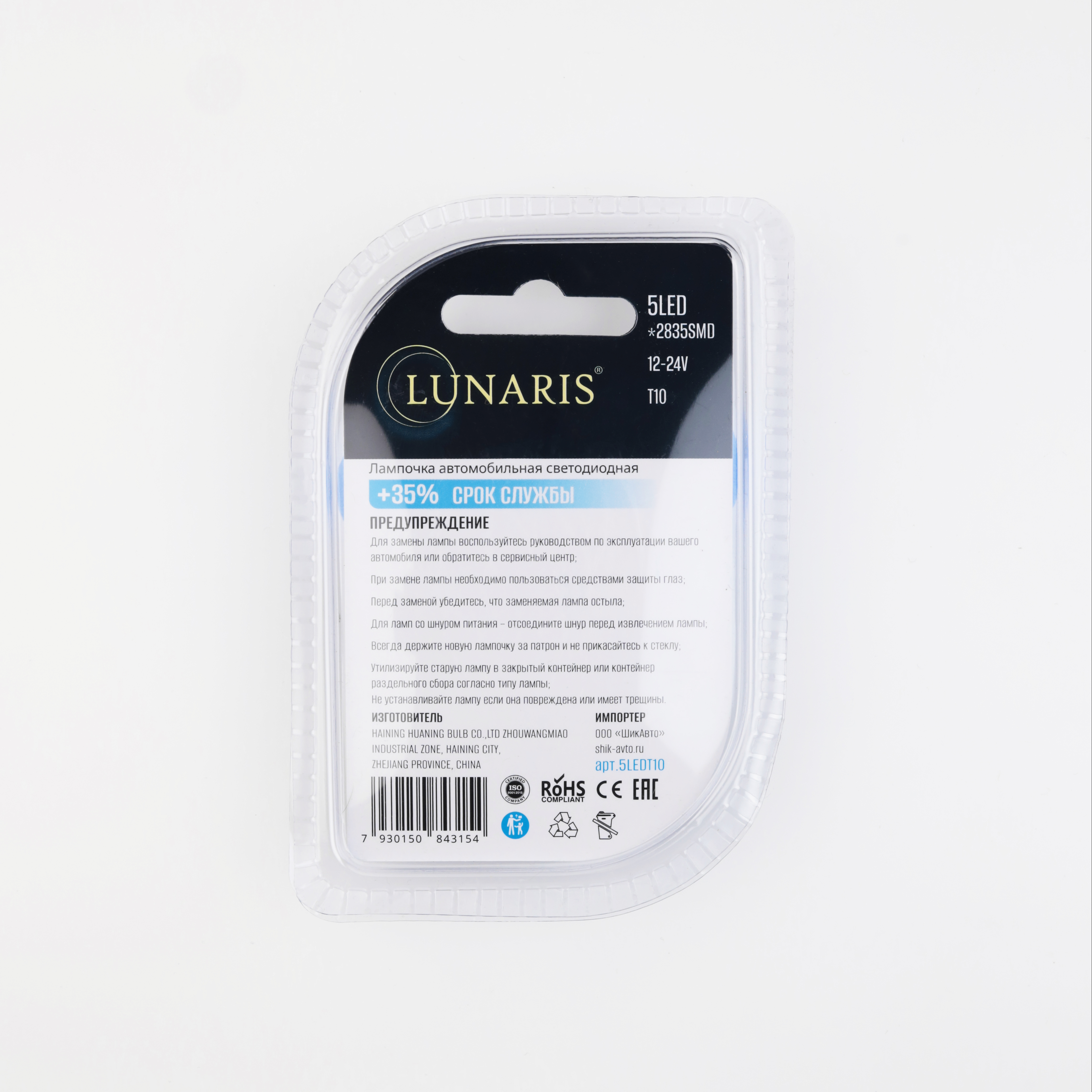 —Лампы светодиодные LUNARIS 12-24V, T10, 5LED (CANBUS) (компл. 2шт) арт.5LEDT10