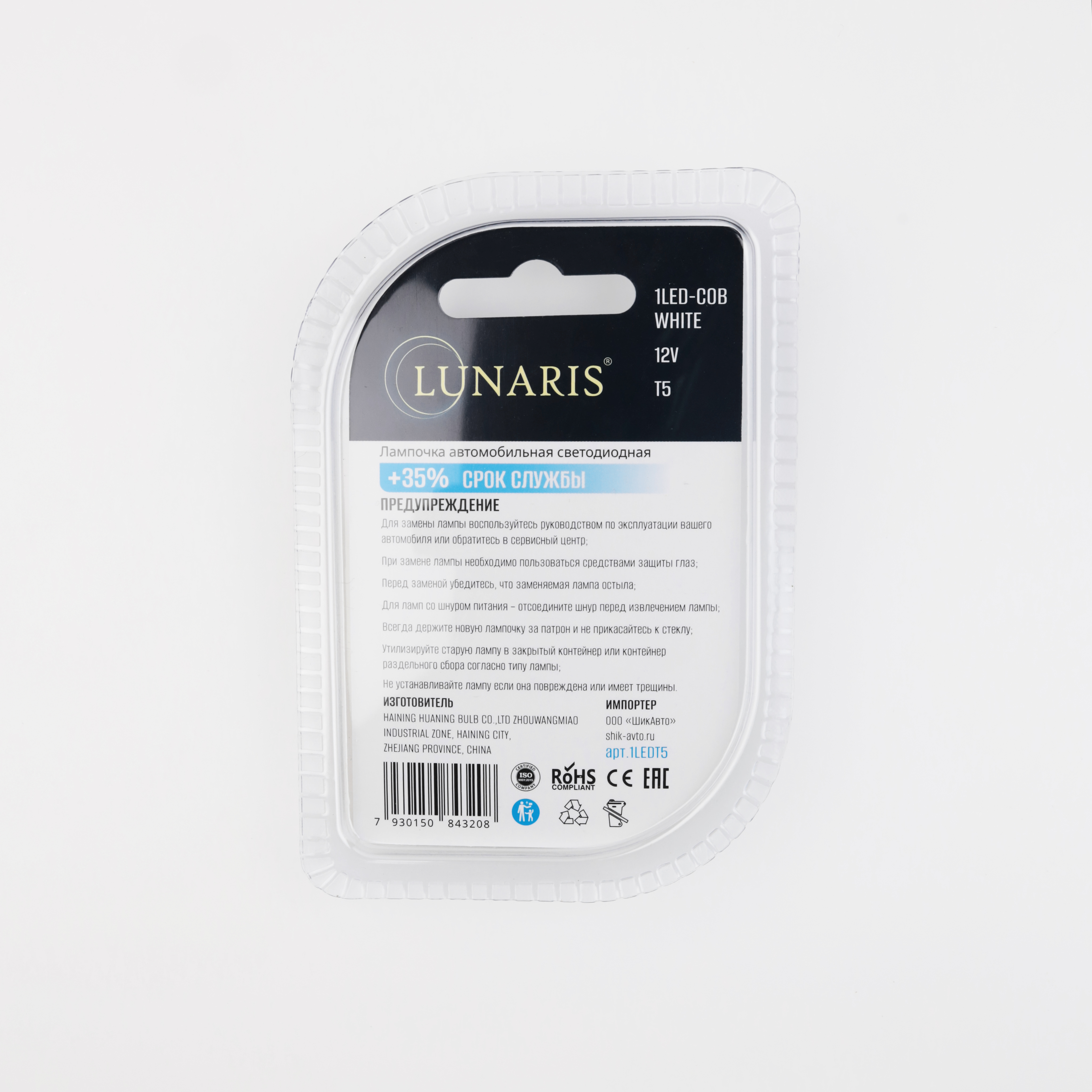 —Лампы светодиодные LUNARIS T5, 12V, 1LED-COB WHITE (компл. 2шт) арт.1LEDT5
