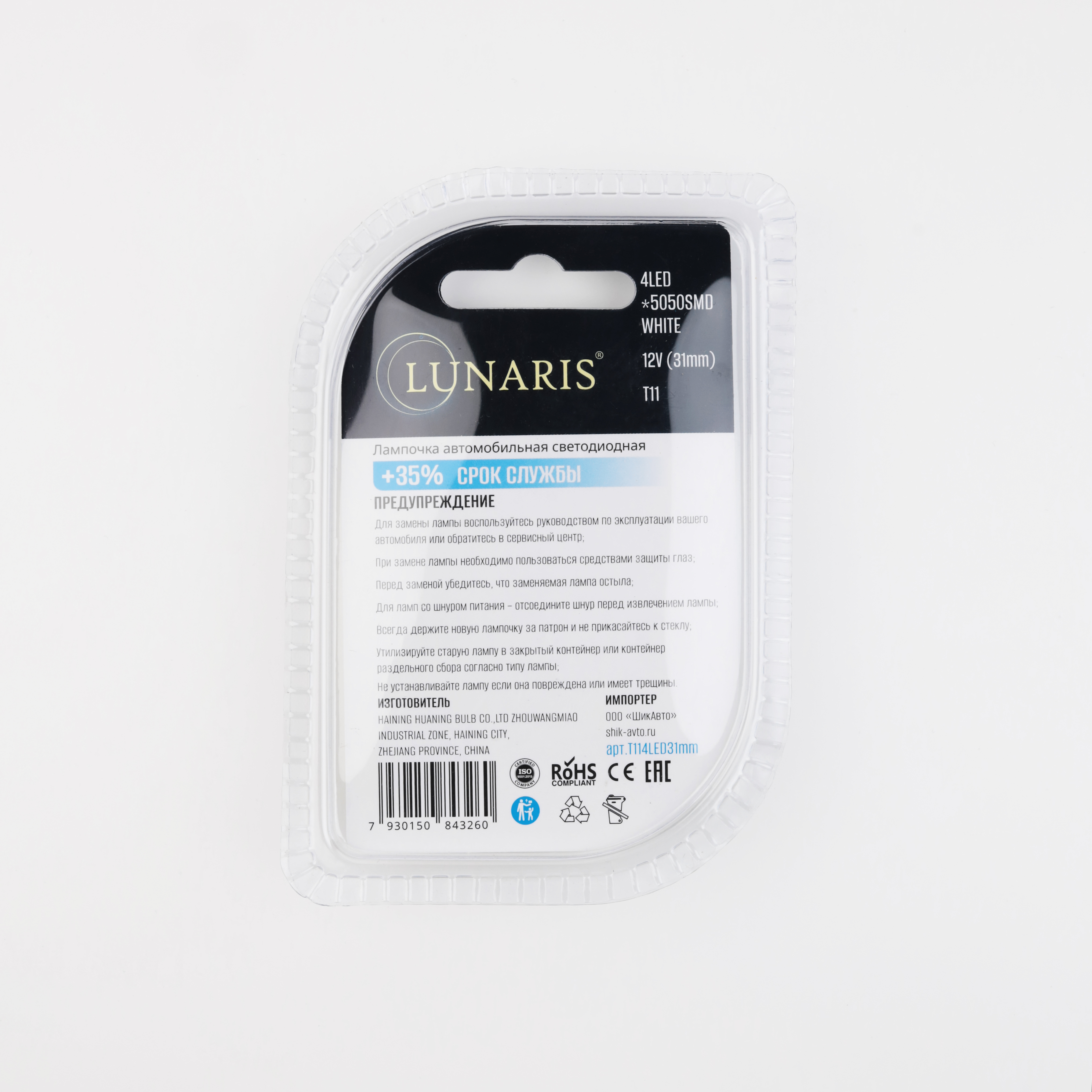 —Лампы светодиодные LUNARIS T11 12V (31mm) 4LED*5050SMD WHITE (компл. 2шт) арт.T114LED31mm
