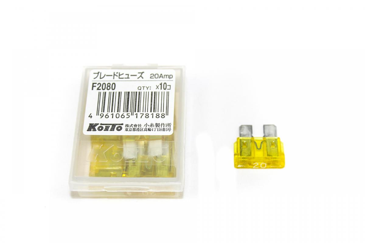 —Предохранитель флажковый Koito F2080, 20A, желтый, 1шт
