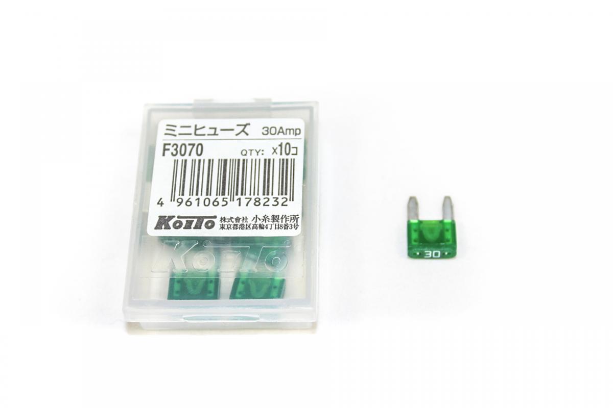—Предохранитель флажковый Koito F3070, 30A, мини, зеленый, 1шт