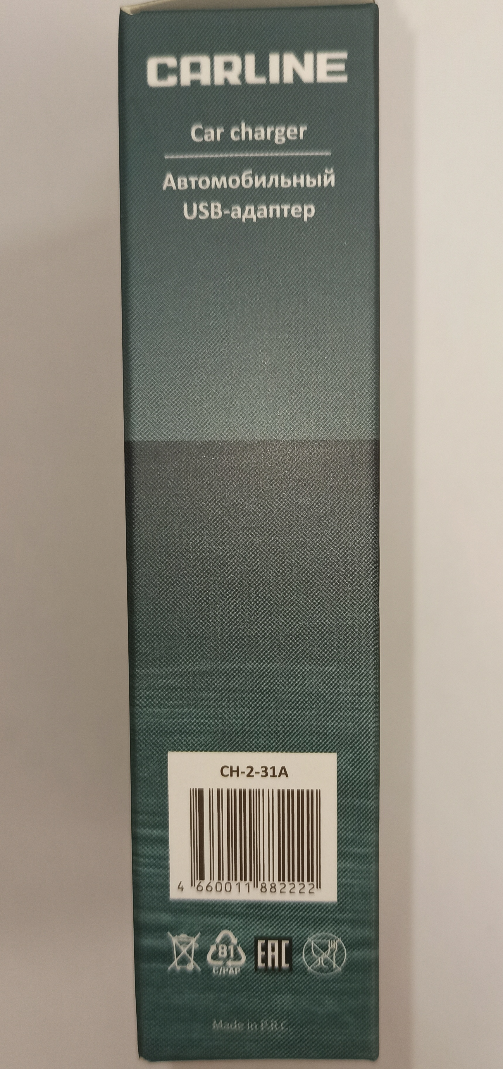 —Адаптер в прикуриватель CARLINE CH-2-31A 2xUSB (3.8A Max) 12/24В, черный, в коробке