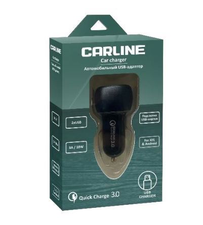 —Адаптер в прикуриватель CARLINE CH-2QC 2xUSB "Quick Charge 3.0" 12В, черный, в коробке