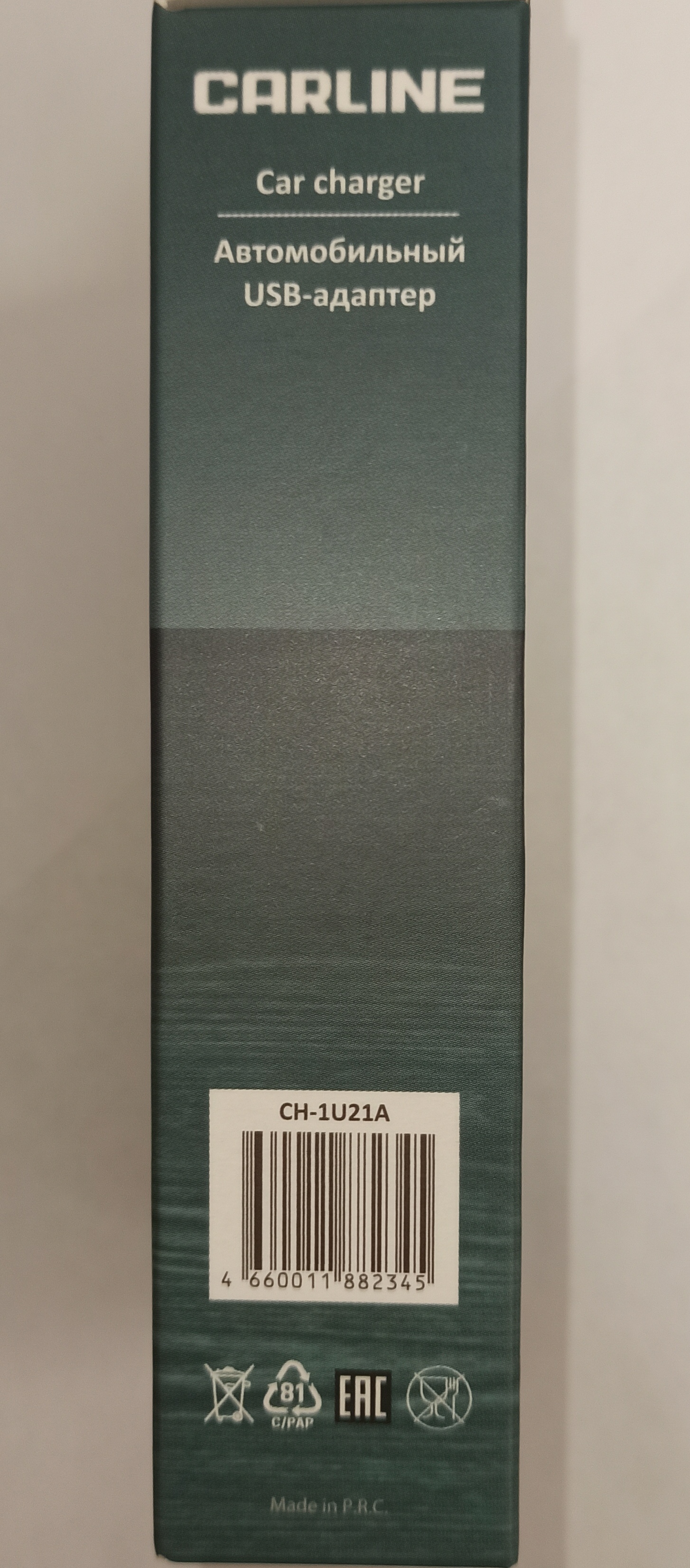 —Адаптер в прикуриватель CARLINE CH-1U21A 1xUSB 2.1A 12/24В, черный, в коробке