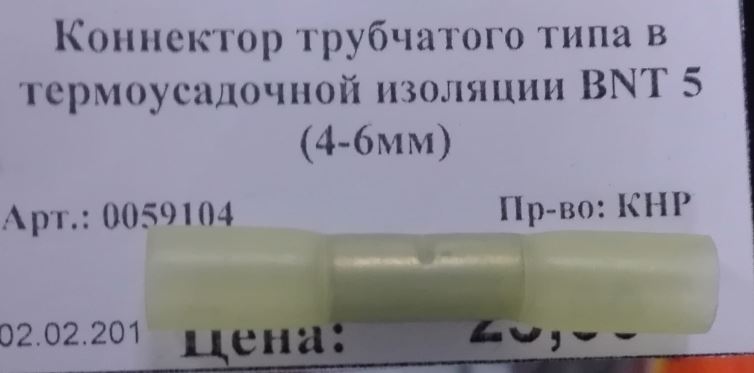 Коннектор трубчатого типа в термоусадочной изоляции BNT 5