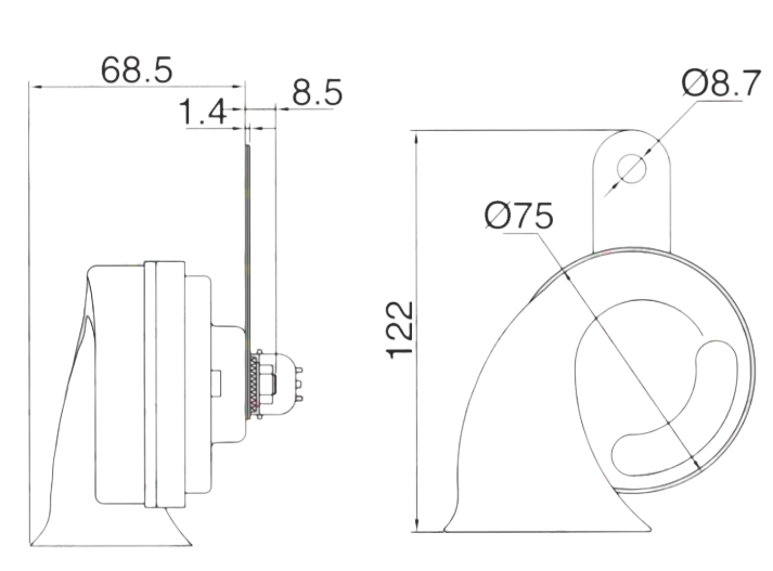 —Сигнал автомобильный "Вымпел-CA-19" (2 тона, улитка, 118 Дб) компл.из 2-х шт.