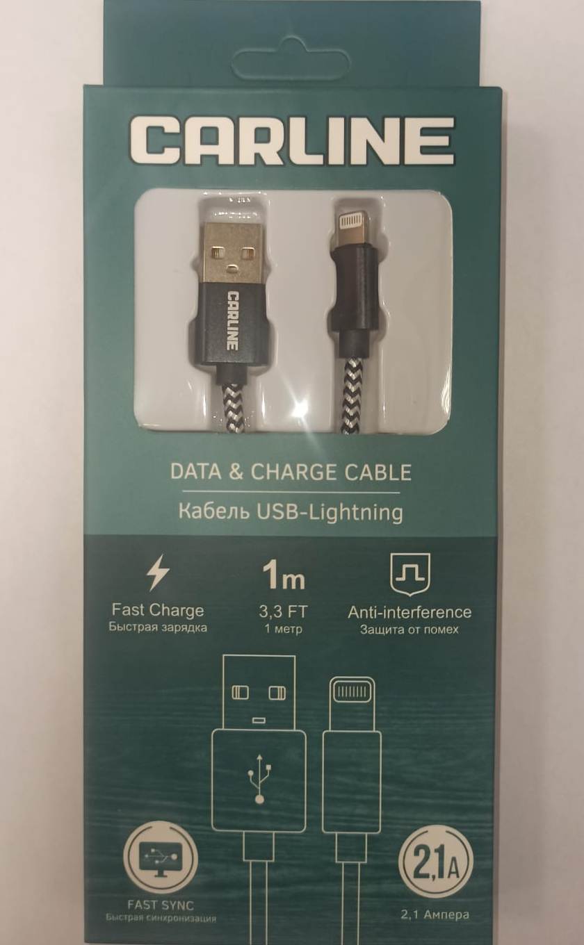 Кабель CAB01121 CARLINE USB-Lightning, тканевая оплетка, защита от помех и быстрая синхронизация устройств. Характеристики: Длина: 1 метр. Материал: ПВХ, нейлон. Выходной ток: до 2,1 А. Скорость зарядки: быстрая.   *Цвет товара в ассортименте.  *Производитель оставляет за собой право менять цвет и дизайн товара и упаковки без уведомления дистрибьюторов.
