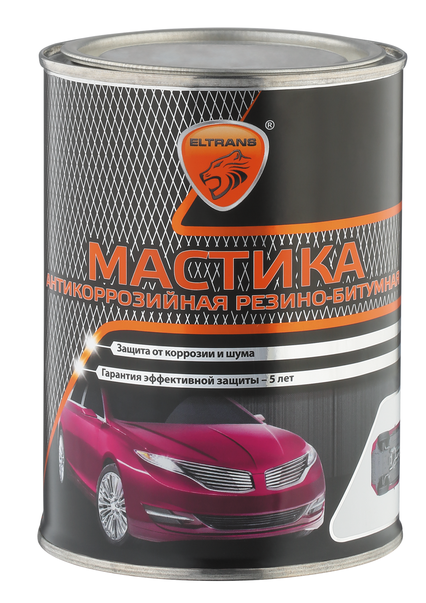 Предназначена для защиты днища и колесных арок автомобиля от коррозии и механических повреждений. Битум в сочетании с несколькими ингибирующими добавками создает надежную гидроизоляцию и предотвращает процессы коррозионного разрушения. Резиновый наполнитель обеспечивает однородность, эластичность и повышенную морозоустойчивость (до -60°С) мастичного покрытия после высыхания. Комплексом минеральных наполнителей достигается хорошая шумоизоляция, поглощение вибраций и антигравийная защита (от ударов камней и касаний с дорожными неровностями). Состав обладает повышенной адгезией и сохраняет эластичность в широком интервале температур, не стекает на жаре и не растрескивается на морозе. Гарантированный срок эффективной защиты от коррозии не менее 5 лет. Способ применения: Использовать при температуре не ниже 0 0С. Перед нанесением мастики днище и колесные арки автомобиля рекомендуется тщательно промыть и просушить. С обрабатываемых поверхностей удалить старую отслаивающуюся краску и ржавчину. При наличии очагов коррозии – обработать преобразователем ржавчины ELTRANS®. Тщательно перемешать содержимое (допускается разбавление ксилолом, сольвентом или уайт-спиритом). Состав наносить с помощью пневматического распыления, шпателем или кистью в 1-2 слоя с промежуточной сушкой 5-6 ч. Полное время высыхания – 24 ч. При необходимости удалить с лакокрасочного покрытия с помощью очистителя битумных пятен ELTRANS®.