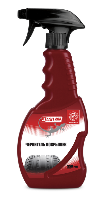 Чернитель покрышек TH-543 (550 мл.). Профессиональная формула для высококачественной экспресс-очистки и обновления боковых поверхностей покрышек и резиновых молдингов.  Формирует на поверхности резины защитную грязеотталкивающую полимерную пленку, обеспечивающую обрабатываемой поверхности ухоженный глянцевый вид новых покрышек.  Восстанавливает структуру поверхности резины.  Препятствует растрескиванию и старению колес.  Обработанные очистителем колеса меньше загрязняются, их можно реже мыть. Применение: Энергично встряхнуть баллон.  На предварительно очищенную и высушенную поверхность, равномерно распылить средство с расстояния 10-15 см.  Дать высохнуть в течение 1-2 минут.  Для получения лучшего результата повторить обработку.  Избегать попадания на протектор.  При обработке пластиковых деталей располировать поверхность мягкой чистой тканью.