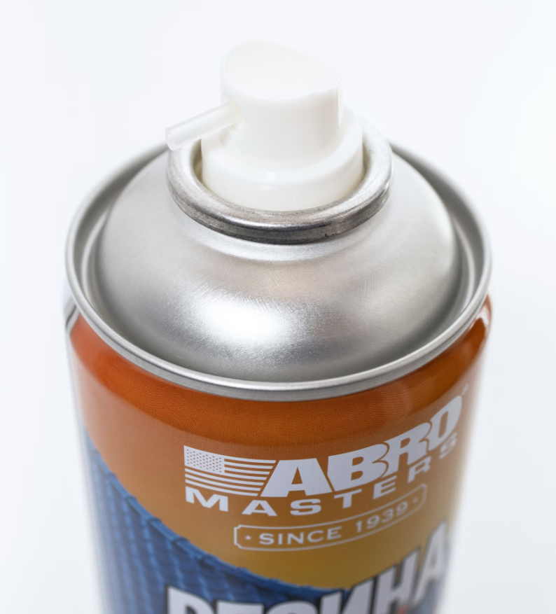 Герметик эластичный Резина-спрей ABRO MASTERS (серая) 540 мл Описание: Мультифункциональный герметик-спрей на основе каучука для наружных и внутренних работ. Сфера применения: Используется для ремонта водосточных систем, кровли, вытяжных труб и дымоходов, ПВХ шлангов и труб, керамических изделий и в прочих случаях, где требуется эластичная герметизация. Свойства: Надёжно герметизирует любые щели и трещины, устраняет протечки. При нанесении жидкий состав легко заполняет любые отверстия и неровности, а после застывания создаёт эластичное водонепроницаемое резиновое покрытие. Обладает высокой адгезией к пластику, бетону, кирпичу, керамике, дереву, битуму, металлу, в том числе гальванизированному и оцинкованному, и прочим материалам. Устойчива к воздействию УФ-лучей и абразивному износу. Диапазон рабочих температур: от -20С до +60С. Защищает обработанные поверхности от образования ржавчины и коррозии. Поддаётся окраске. Удобная и лёгкая в использовании, не требует дополнительных инструментов. Применение: 1. Очистите и высушите обрабатываемую поверхность. 2. Хорошо потрясите баллон в течение 1 минуты и плавными движениями распылите на поверхность. 3. Для лучшего результата нанесите второй слой через 1,5 часа. 4. После применения очистите распылитель, перевернув баллон и продув головку до прекращения выхода герметика.  Первичное схватывание происходит через 1,5 часа, полная полимеризация — через 24 часа. Рекомендуемая температура нанесения: +10..+30С. На время полимеризации защитите герметик от любого механического воздействия, а также атмосферных осадков. Отверстия более 5 мм перед герметизацией рекомендуется усилить стекловолокном. Состав: Каучук, ксилол, стирол-этилен/бутилен-стирол блок-сополимеры, этилбензол, бис (пентаметил) себацинат, метил (пентаметил) себацинат.
