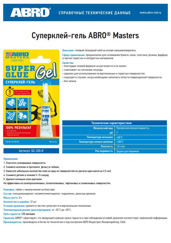 —Суперклей-гель 3г SG-330-R ABRO MASTERS