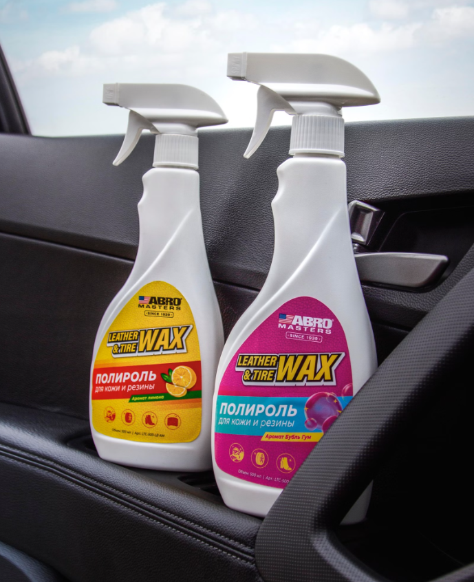 Полироль для кожи и резины ABRO MASTERS (Бубль Гум) Описание: Универсальный полироль-очиститель с триггером. Сфера применения: Применяется для обработки кожаной обивки салона, нерабочих поверхностей шин, резиновых ковриков, бамперов и салонного пластика. Может использоваться для ухода за кожаной мебелью, обувью, сумками. Свойства: Высокоэффективное средство для ухода за кожаными, резиновыми, пластиковыми и виниловыми поверхностями. Восстанавливает первоначальный цвет и блеск. Продлевает срок эксплуатации обрабатываемых изделий благодаря защитному слою. Придает поверхности антистатические свойства. Не оставляет жирной пленки. Предохраняет от старения, выцветания, растрескивания, воздействия УФ-лучей. Защищает резиновые уплотнители от примерзания зимой. Применение: 1. Очистите обрабатываемые поверхности от пыли и грязи. 2. Нанесите средство с расстояния 15−20 см. 3. Распределите средство по поверхности чистой тканью. Состав: Деионизированная вода, силиконовое масло, 2-пропоксиэтанол, оксид дециламина, метасиликат натрия, тетранатрий ЭДТК, 2-бутоксиэтанол.