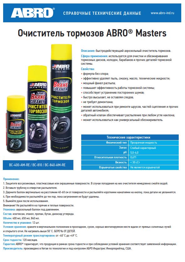 —Очиститель тормозов ABRO MASTERS BC-810 650мл