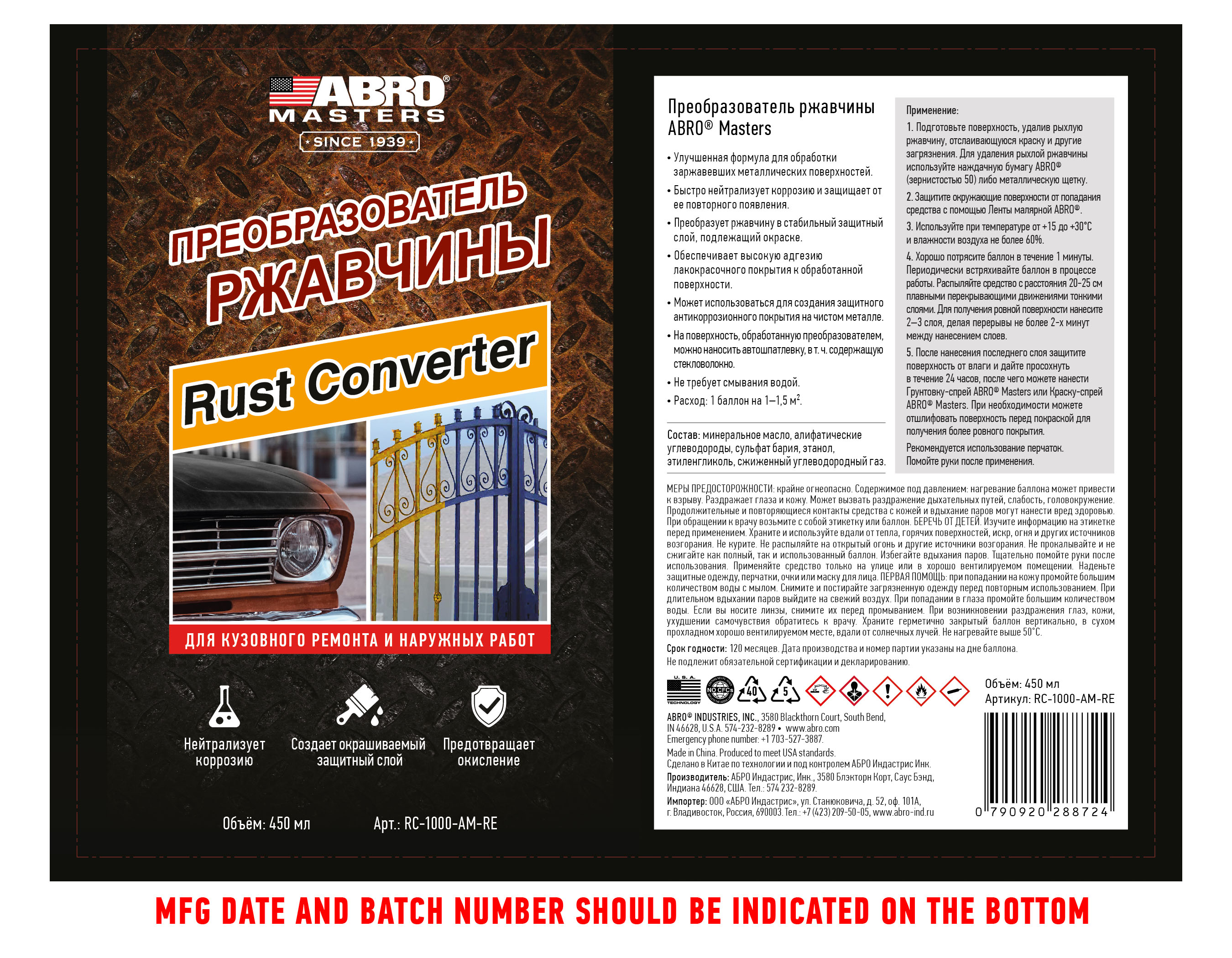 —Преобразователь ржавчины ABRO MASTER RC-1000-AM-RE 450мл