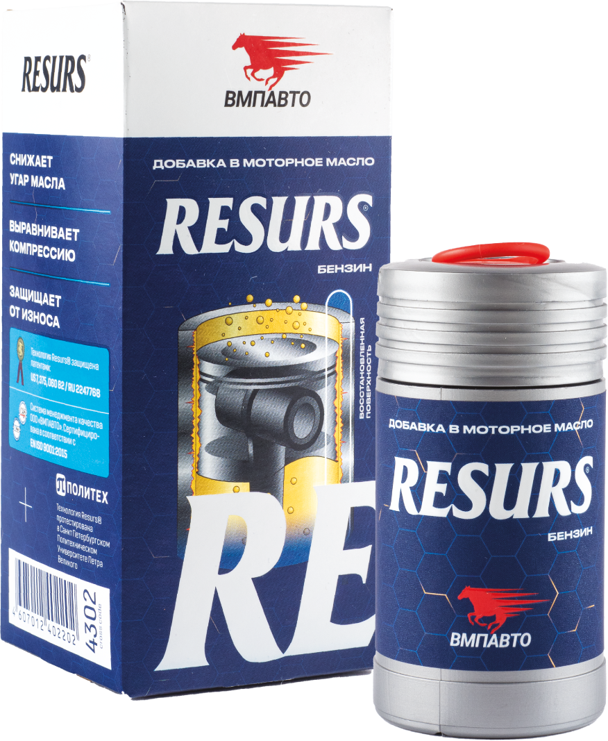 Присадка RESURS Universal для двигателей Присадка для двигателя RESURS UNIVERSAL предназначена для безразборного восстановления и защиты от износа бензиновых двигателей. уменьшает шум и вибрации мотора; выравнивает компрессию; увеличивает мощность до 8-10%; экономит топливо до 10%; снижает угар масла до 5 раз; устраняет дымление двигателя; устраняет стук гидрокомпенсаторов.