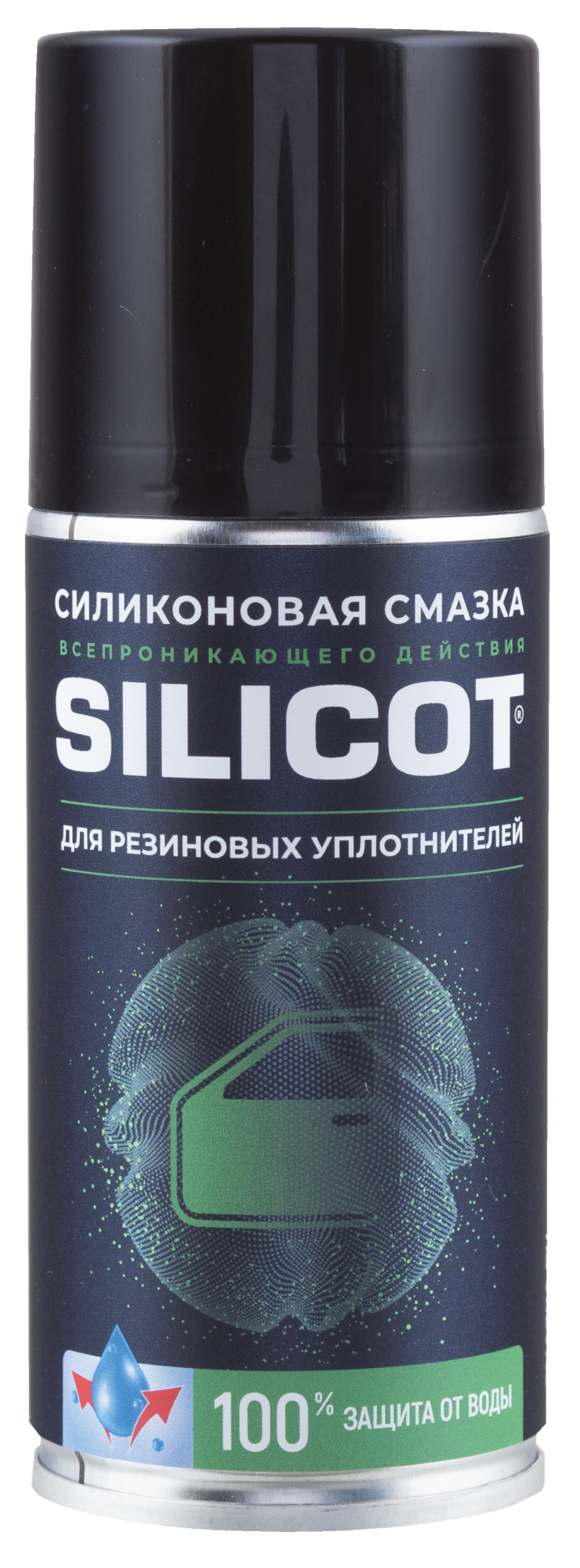 Смазка Silicot Spray для резиновых уплотнителей Силиконовая аэрозольная смазка Silicot SPRAY сохраняет свойства резины. Позволяет не искать место в механизме, которое нуждается в смазке —достаточно просто распылить Silicot SPRAY внутрь устройства. Туман из микрокапель силикона равномерно распределится по всем подвижным частям механизма. Температурный диапазон от -50 до +200 градусов. 100% защита от воды и коррозии.