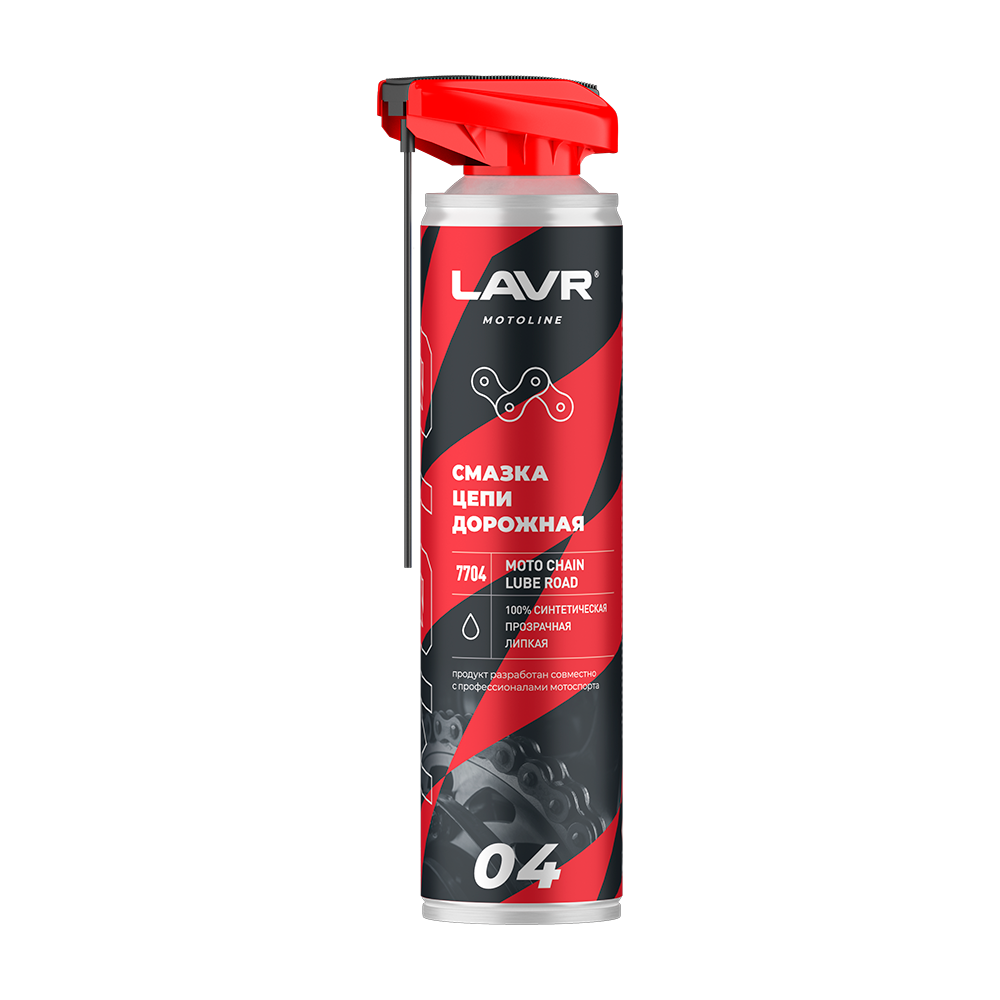 Липкая синтетическая смазка для быстродвижущихся цепей мототехники. Специально разработана для дорожных мотоциклов с уплотнителями типа О-ring, X-ring, Z-ring и без уплотнителей. Образует смазывающую пленку, стойкую к воздействию воды и грязи. Защищает сальники цепи независимо от нагрузок и скоростей. Увеличивает срок службы цепи, уменьшая трение. Характеристики:  100% Синтетическая Восстанавливает эластичность сальников Удерживается на цепи Уменьшает износ Не вымывается водой Предотвращает образование коррозии Тип товара: смазка Область применения: мотоциклетная цепь Тип тары: аэрозоль Перед обработкой цепь очистить от следов старой смазки и грязи с помощью Очистителя цепи Ln7701. Тщательно встряхнуть баллон перед использованием. Нанести средство тонким слоем на внутреннюю часть цепи, медленно поворачивая колесо для максимального проникновения. Дать средству высохнуть в течение 10 — 15 минут, после чего защитные свойства достигнут максимума. После смазки протиреть цепь сухой тряпкой, чтобы удалить излишки смазки. Проводить обслуживание лучше ПОСЛЕ поездки, когда цепь прогрета. Для достижения наилучшего результата использовать при температуре баллона выше +14°C. Избегать попадания смазки на тормозные механизмы!